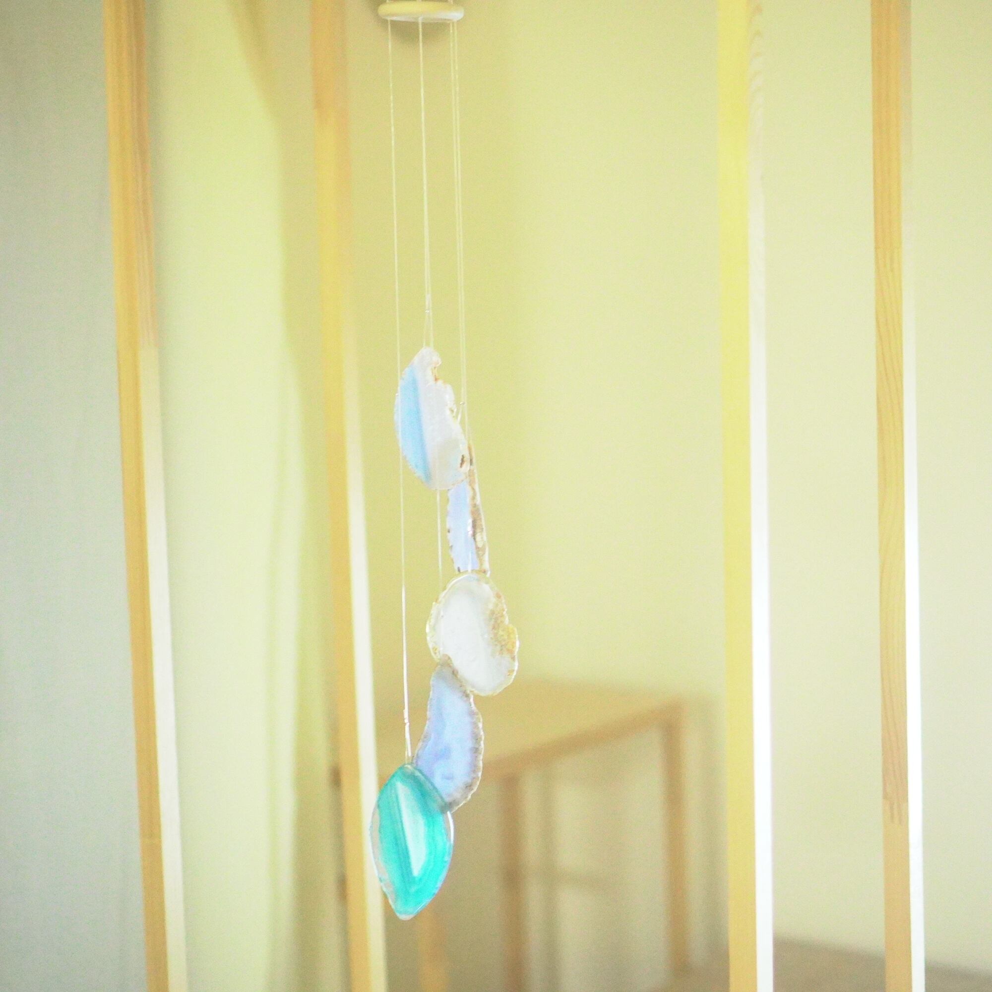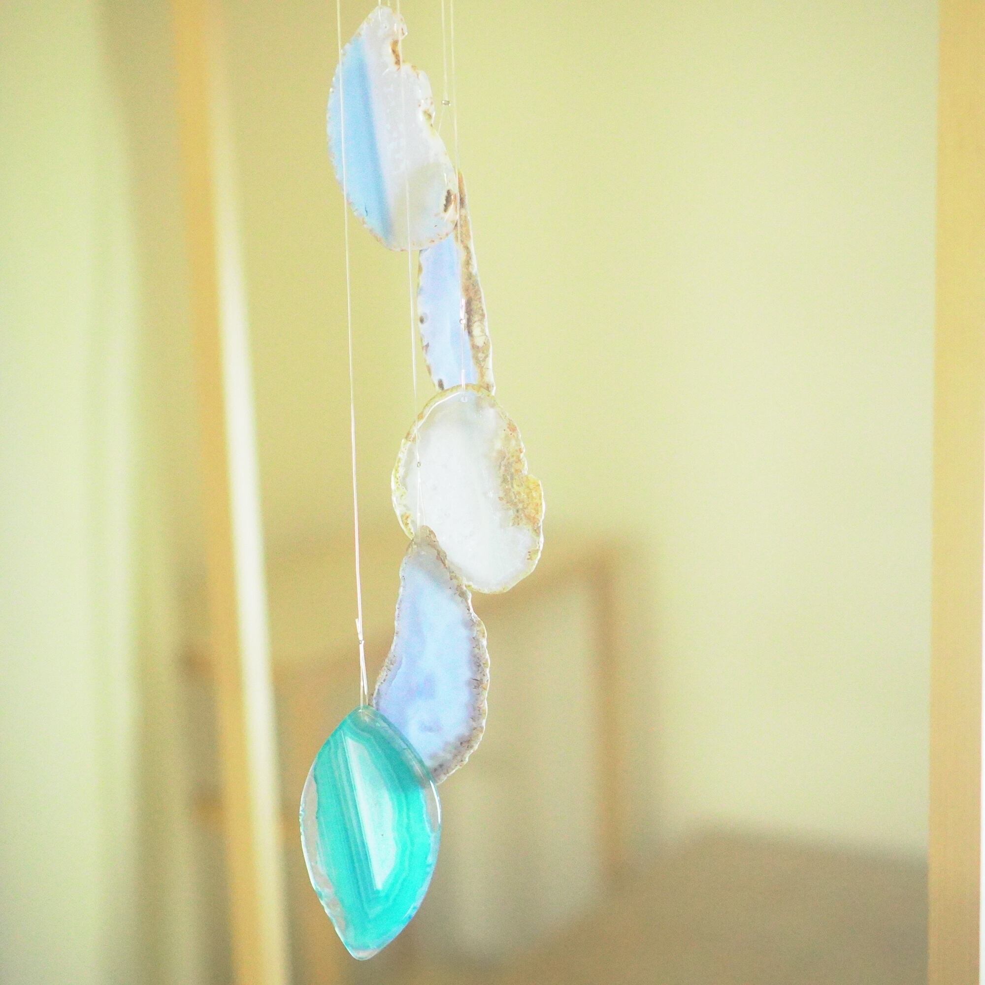 連なるアゲートが風を受けて揺れるとチリンチリン、美しい響きの音が鳴りとても癒されます。