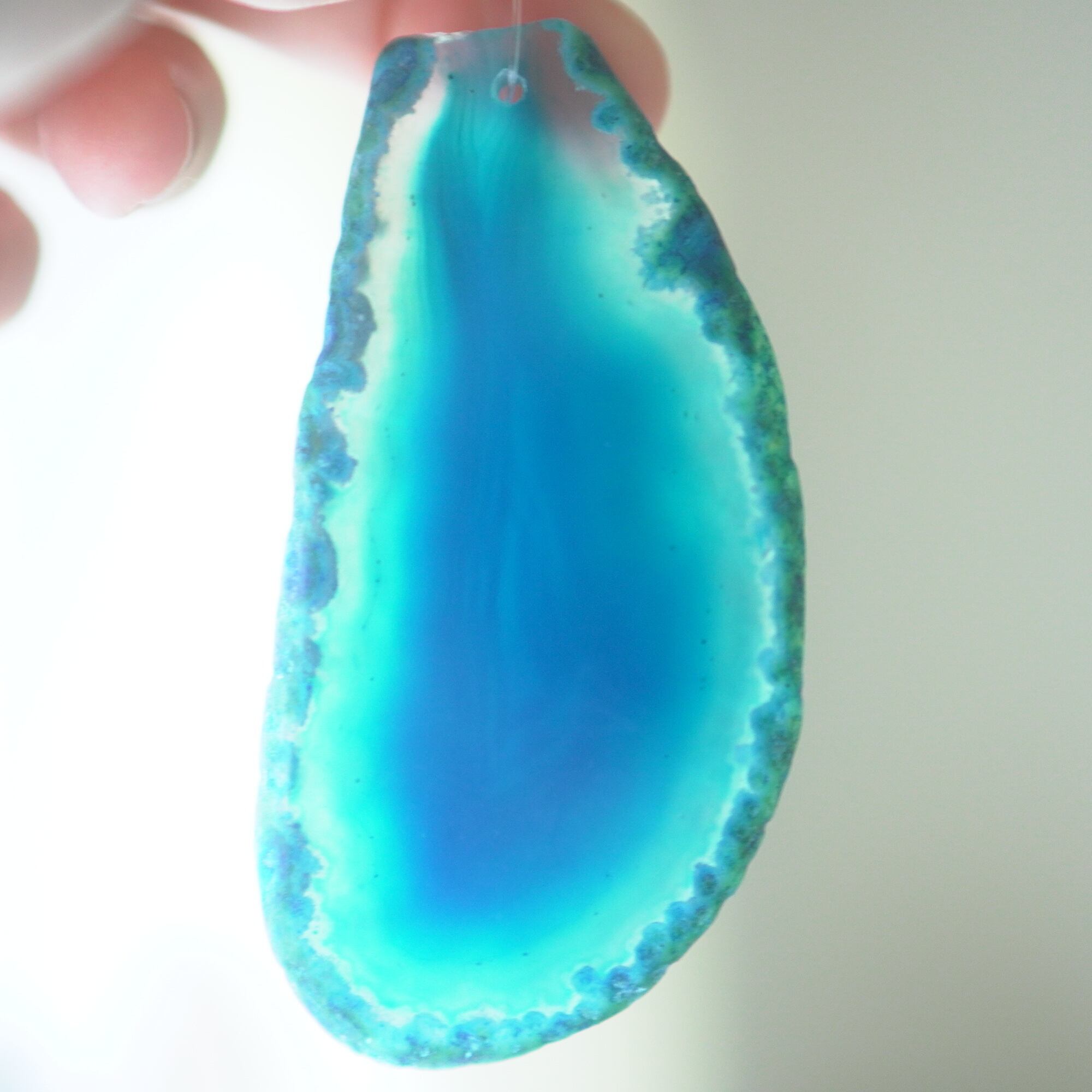✧✧✧染色の石なので耐光性(光による経年でのカラー変化の耐性)に優れているわけではなく一日の中で長時間強い日光に当たるような場所に飾られるのはおすすめしないのですが、陽光に透かした時にだけ真価を発揮する美しさがありますので、是非たまに翳したりして光と一緒にお楽しみいただけたらと思っております。特に濃い鮮やかな色など、気になられる場合は、日光のあまり当たらない場所に飾っていただけたらと思います✧✧✧