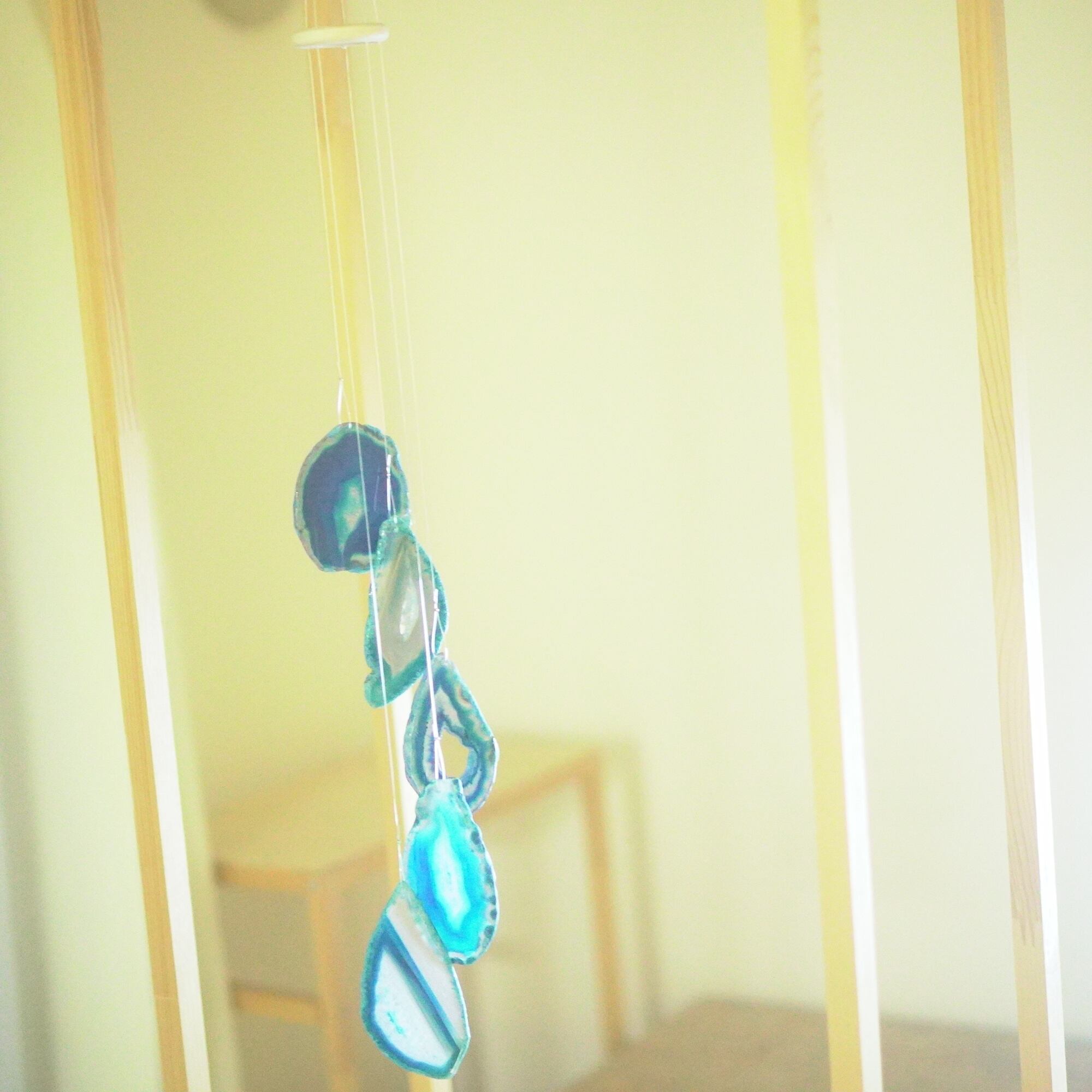 連なるアゲートが風を受けて揺れるとチリンチリン、美しい響きの音が鳴りとても癒されます。