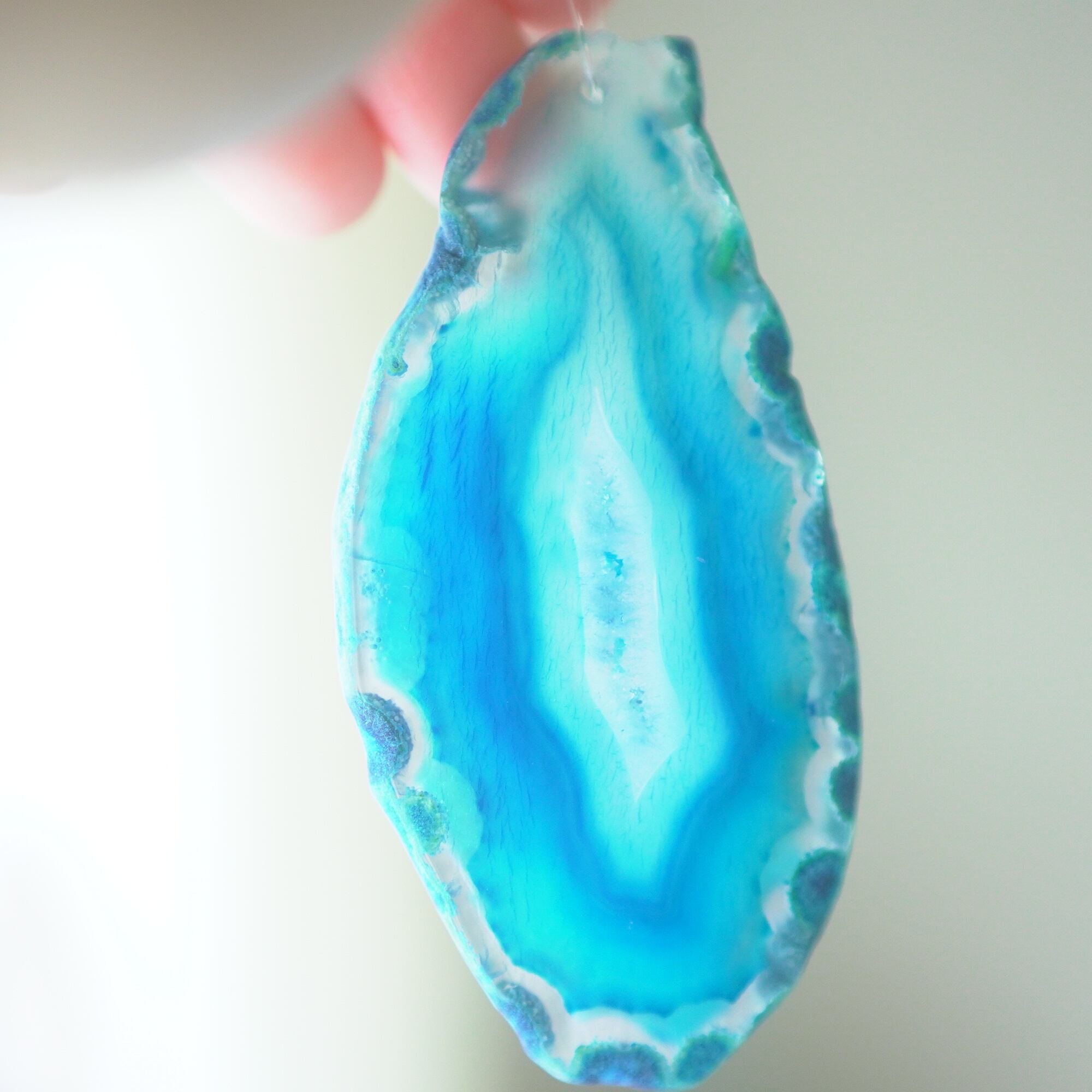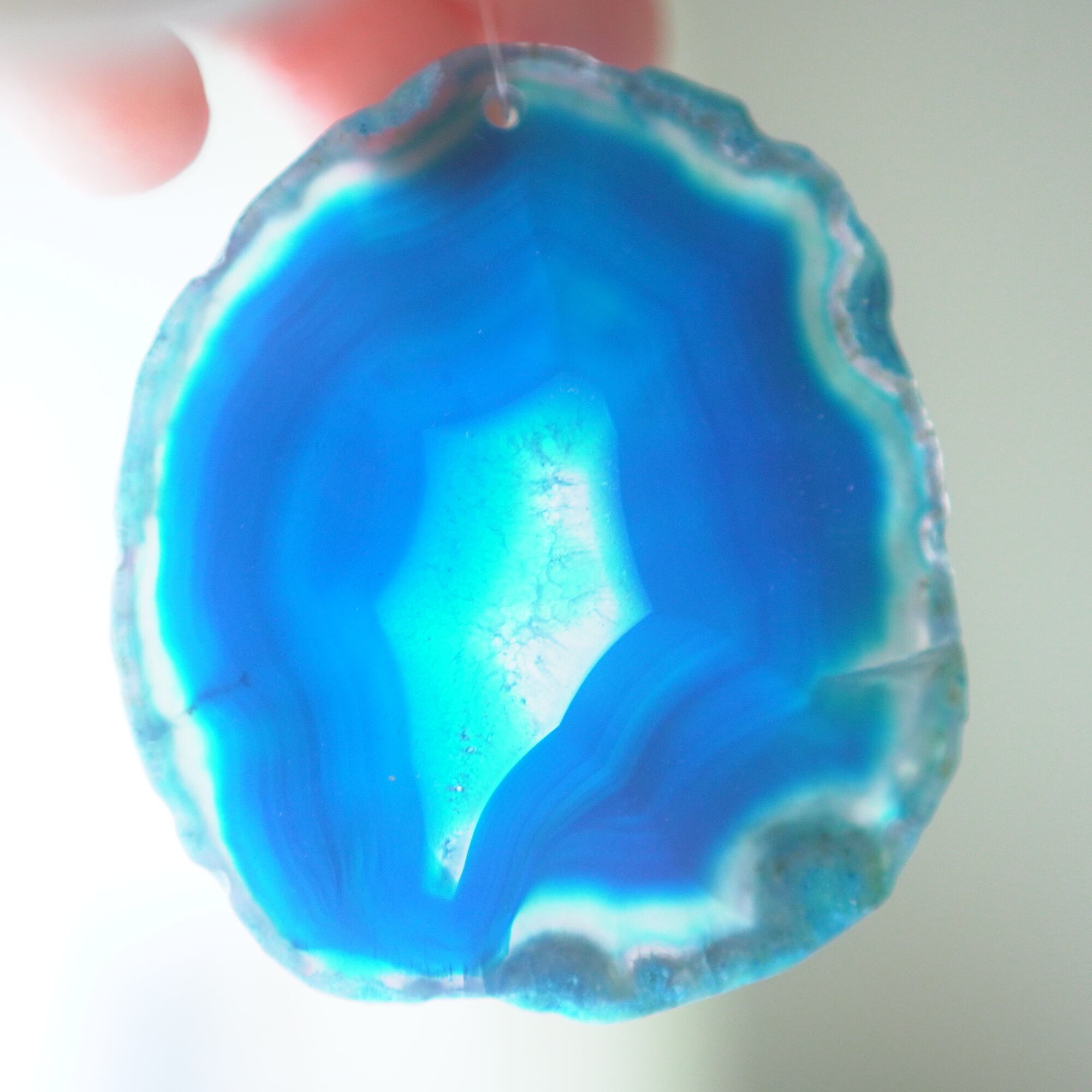 ✧✧✧染色の石なので耐光性(光による経年でのカラー変化の耐性)に優れているわけではなく一日の中で長時間強い日光に当たるような場所に飾られるのはおすすめしないのですが、陽光に透かした時にだけ真価を発揮する美しさがありますので、是非たまに翳したりして光と一緒にお楽しみいただけたらと思っております。特に濃い鮮やかな色など、気になられる場合は、日光のあまり当たらない場所に飾っていただけたらと思います✧✧✧