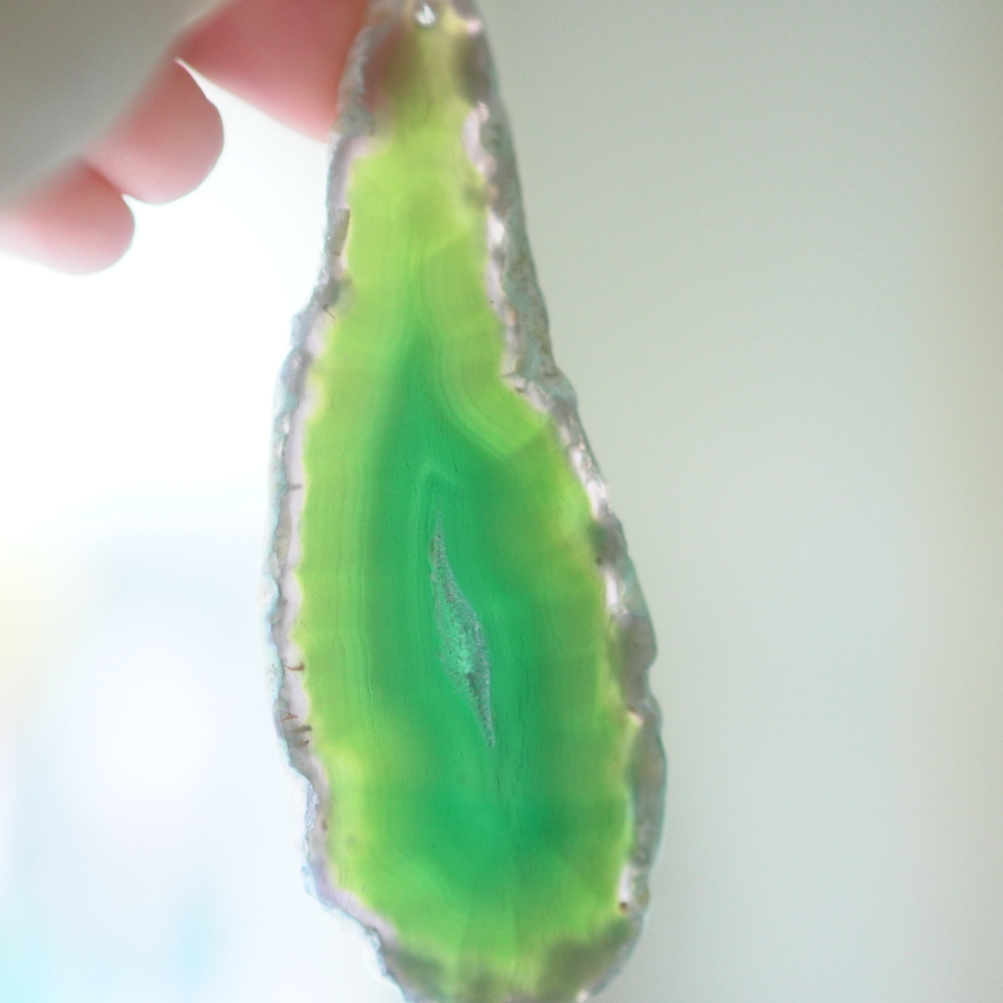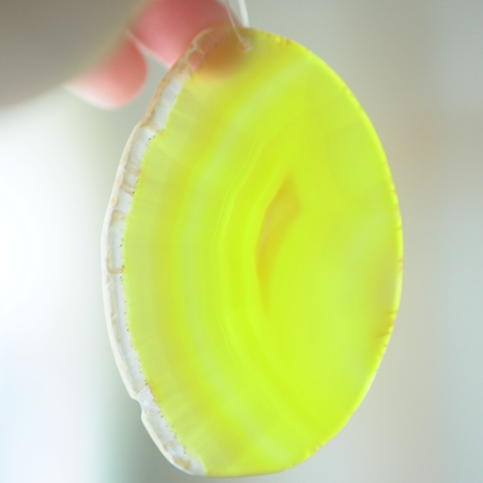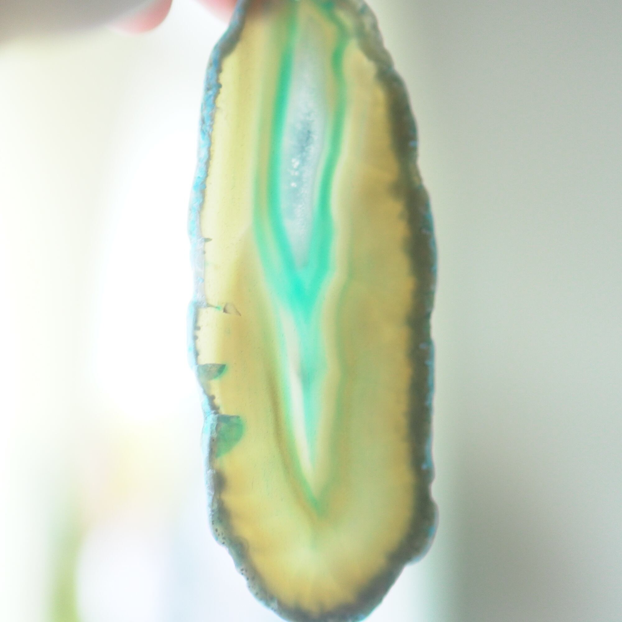 ✧✧✧染色の石なので耐光性(光による経年でのカラー変化の耐性)に優れているわけではなく一日の中で長時間強い日光に当たるような場所に飾られるのはおすすめしないのですが、陽光に透かした時にだけ真価を発揮する美しさがありますので、是非たまに翳したりして光と一緒にお楽しみいただけたらと思っております。特に濃い鮮やかな色など、気になられる場合は、日光のあまり当たらない場所に飾っていただけたらと思います✧✧✧