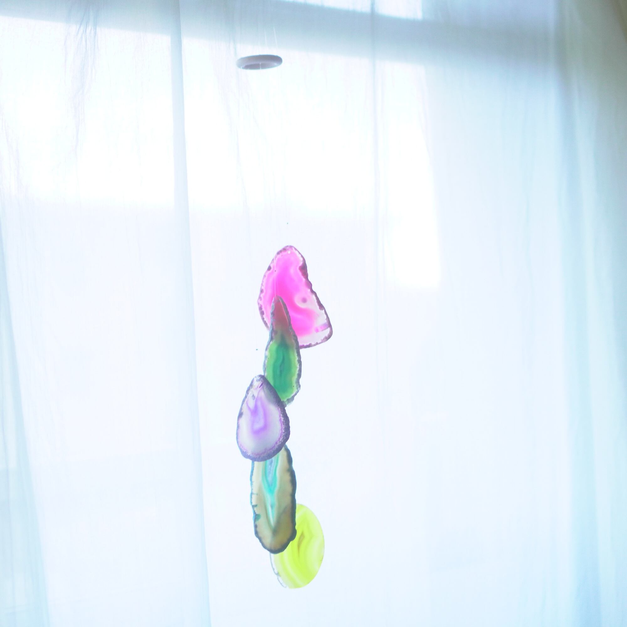 そしてカーテン越しではなく直射日光を当てた際のサンキャッチャーとしてのチャイムも、美しい光をお部屋の中に運んでくれます。
