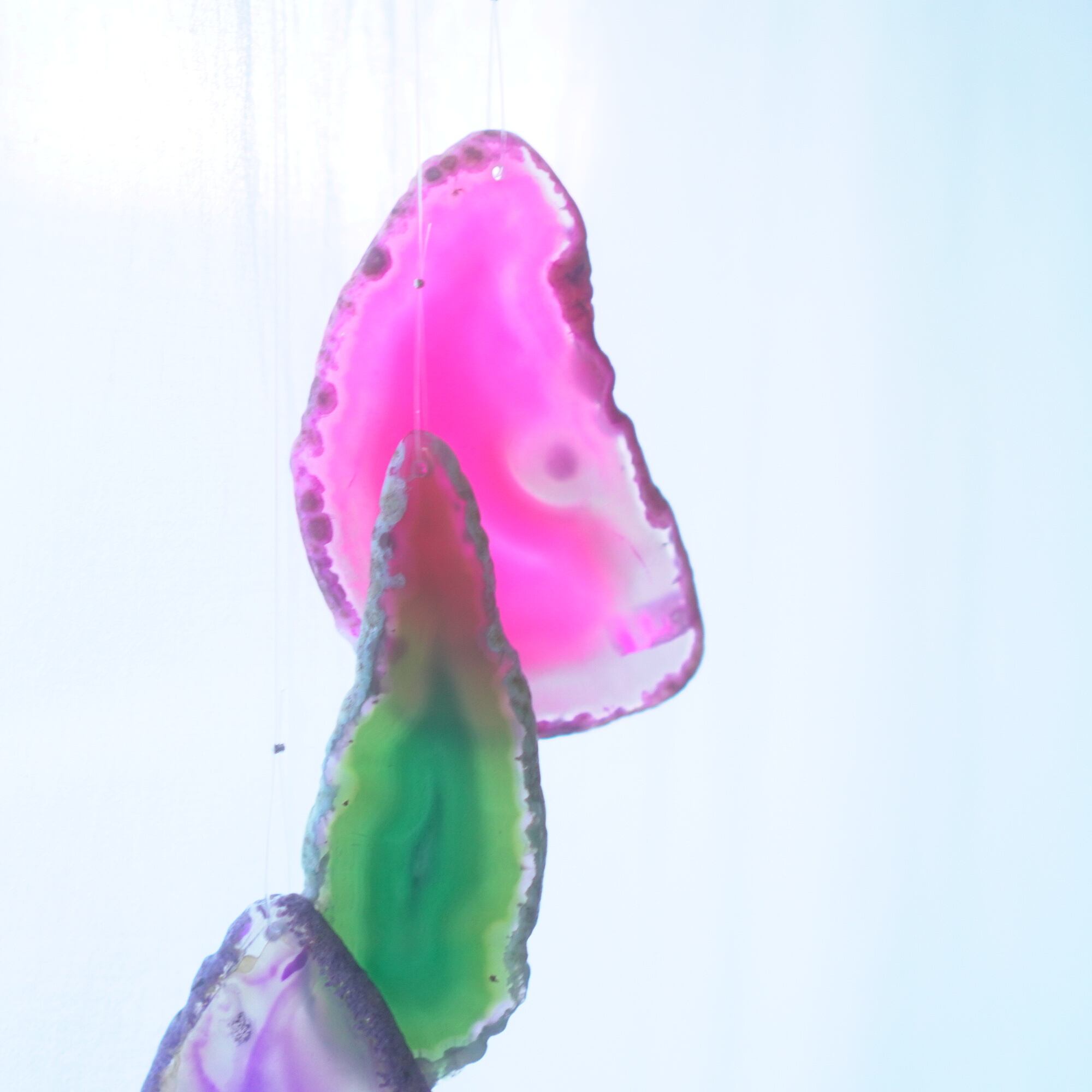 連なるアゲートが風を受けて揺れるとチリンチリン、美しい響きの音が鳴りとても癒されます。