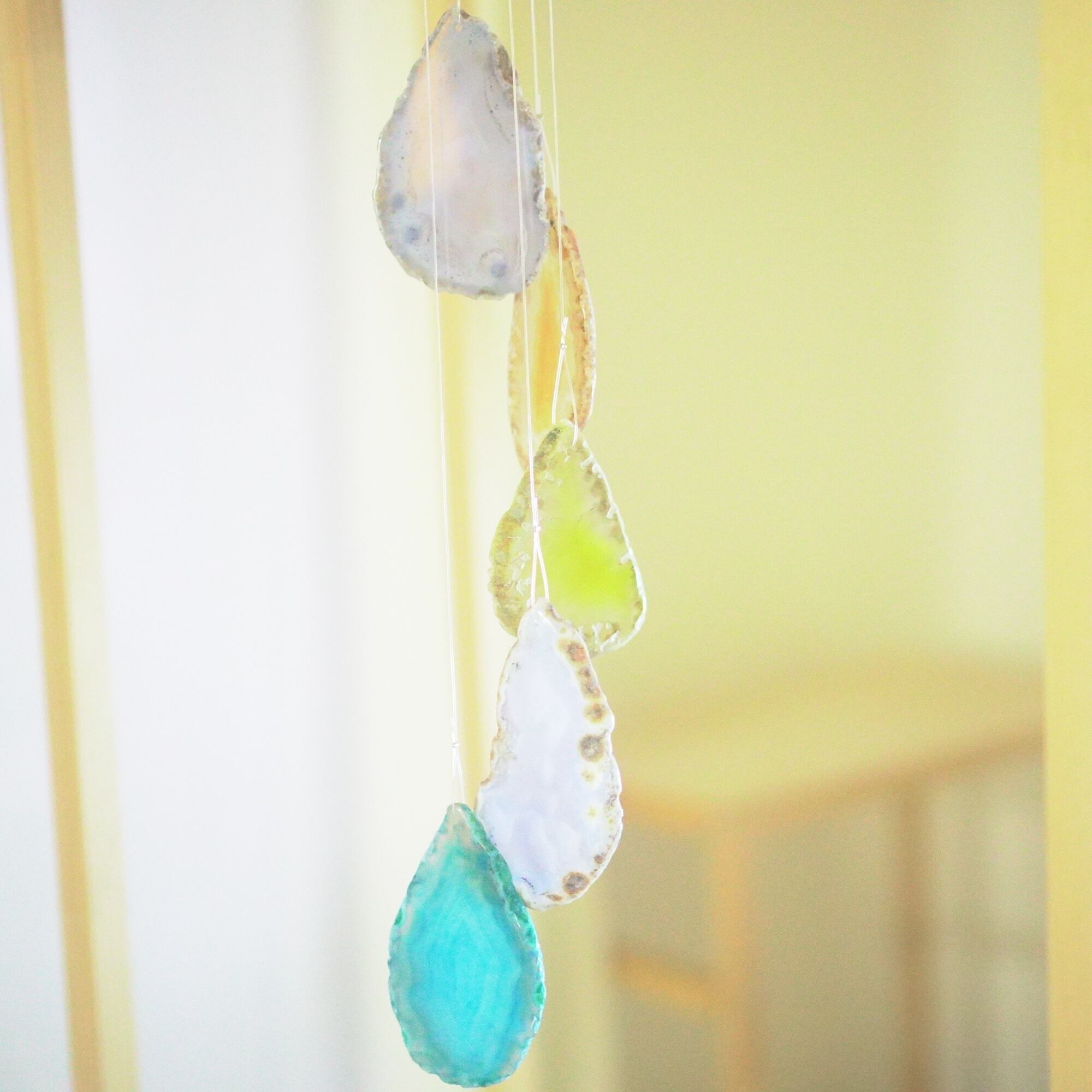 連なるアゲートが風を受けて揺れるとチリンチリン、美しい響きの音が鳴りとても癒されます。
