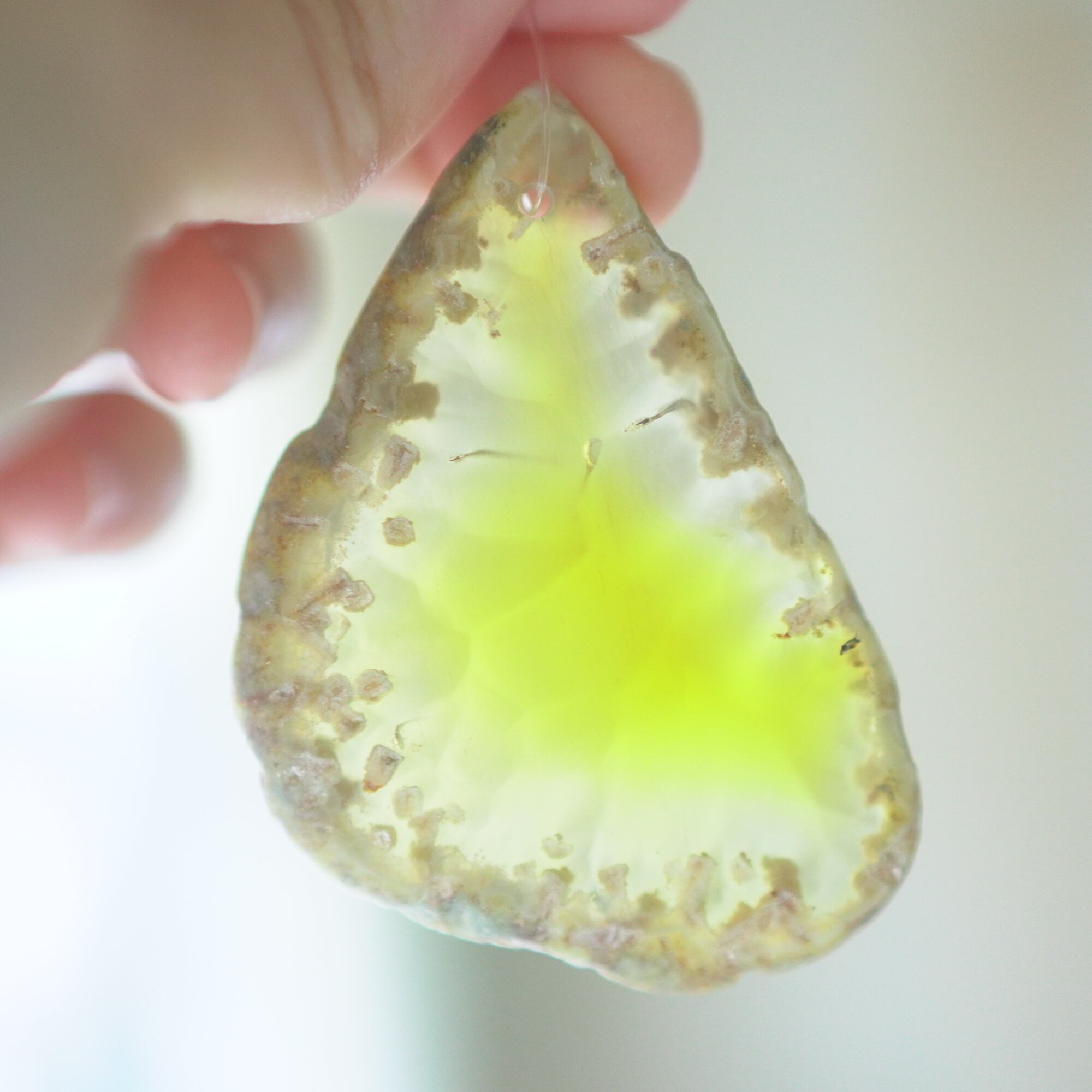 ✧✧✧染色の石なので耐光性(光による経年でのカラー変化の耐性)に優れているわけではなく一日の中で長時間強い日光に当たるような場所に飾られるのはおすすめしないのですが、陽光に透かした時にだけ真価を発揮する美しさがありますので、是非たまに翳したりして光と一緒にお楽しみいただけたらと思っております。特に濃い鮮やかな色など、気になられる場合は、日光のあまり当たらない場所に飾っていただけたらと思います✧✧✧