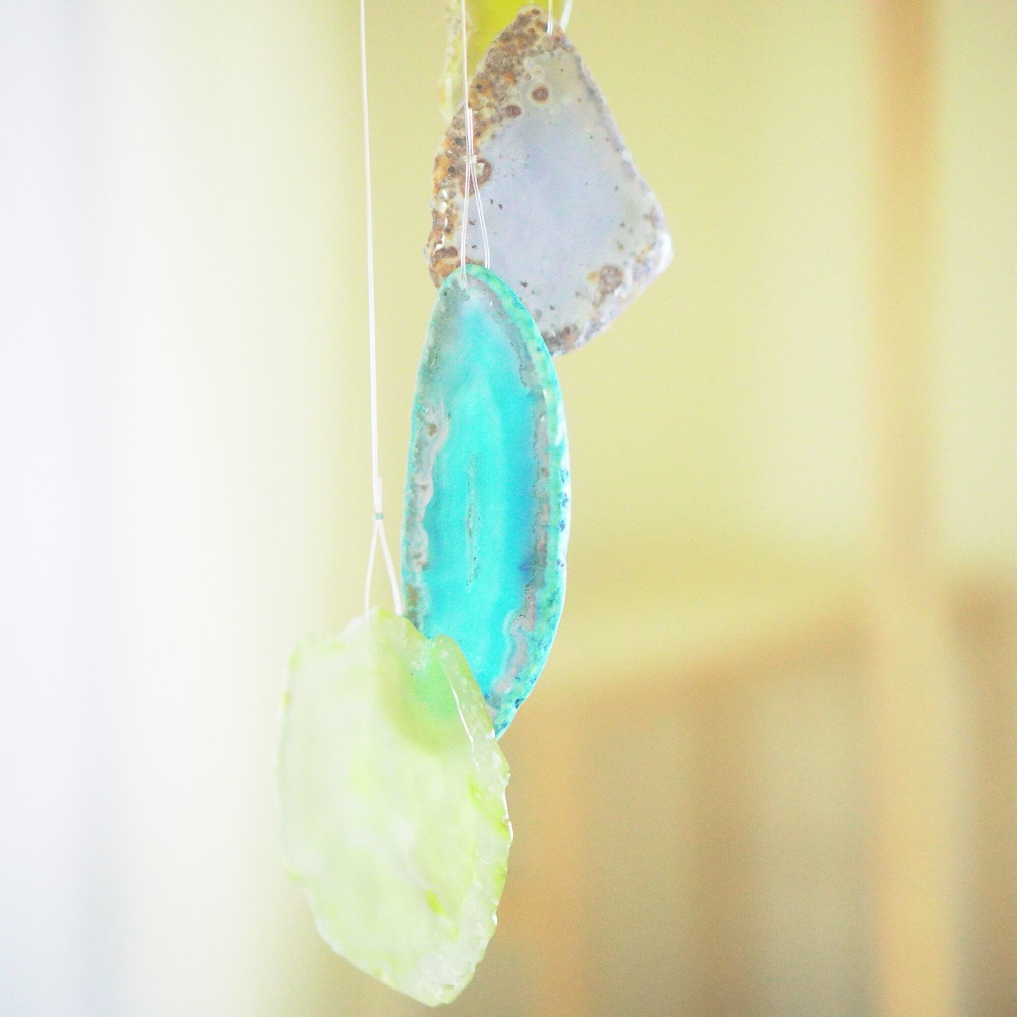 連なるアゲートが風を受けて揺れるとチリンチリン、美しい響きの音が鳴りとても癒されます。