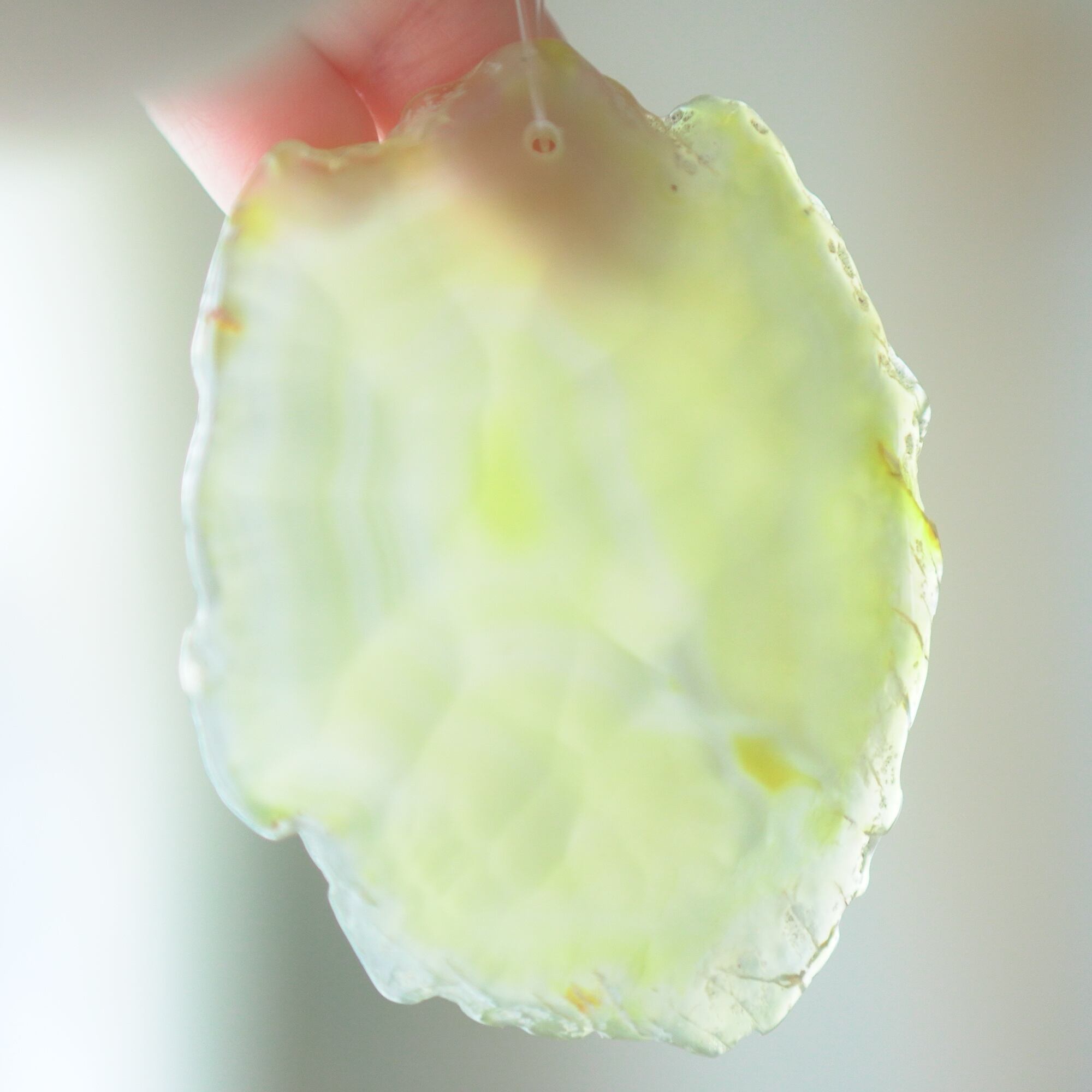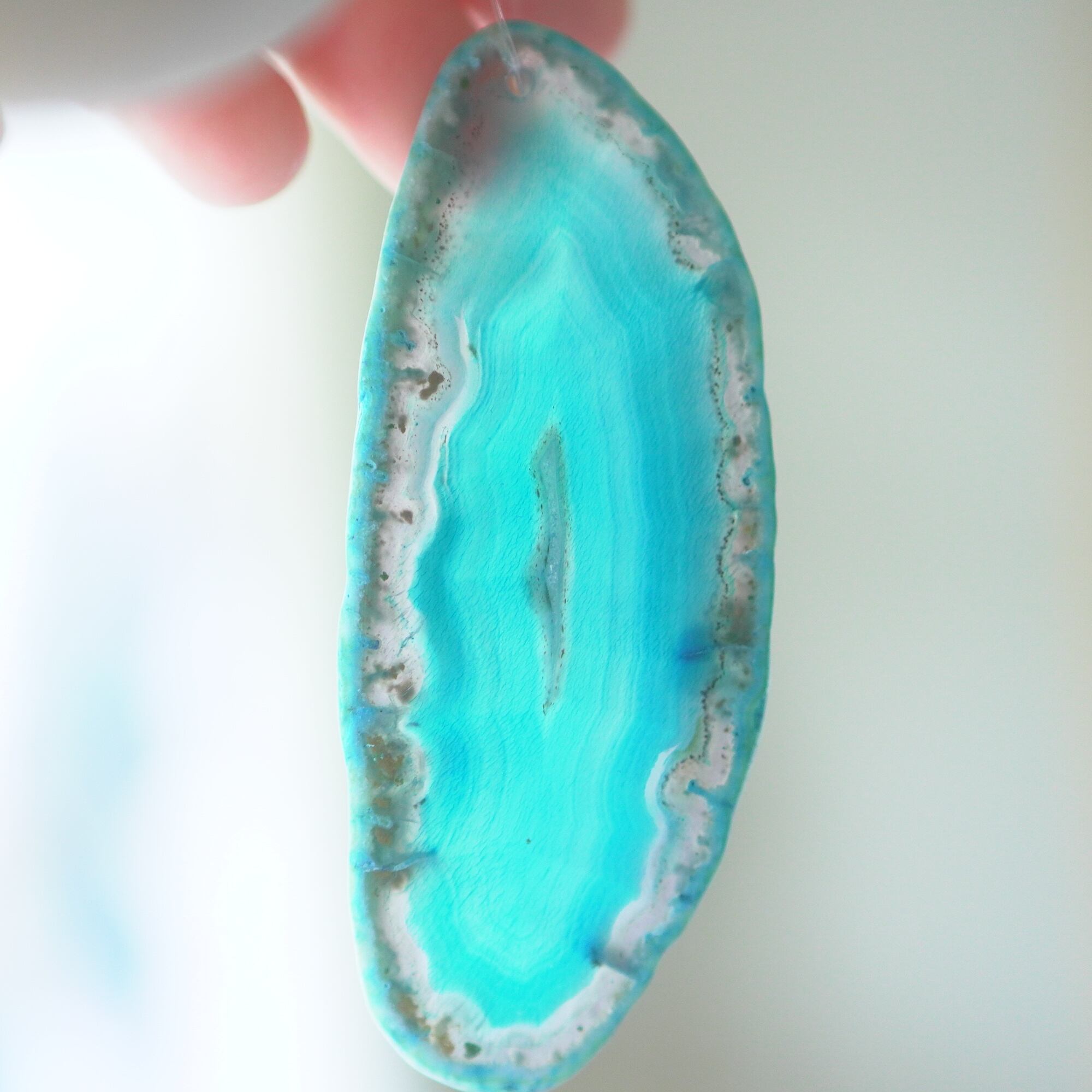 ✧✧✧染色の石なので耐光性(光による経年でのカラー変化の耐性)に優れているわけではなく一日の中で長時間強い日光に当たるような場所に飾られるのはおすすめしないのですが、陽光に透かした時にだけ真価を発揮する美しさがありますので、是非たまに翳したりして光と一緒にお楽しみいただけたらと思っております。特に濃い鮮やかな色など、気になられる場合は、日光のあまり当たらない場所に飾っていただけたらと思います✧✧✧