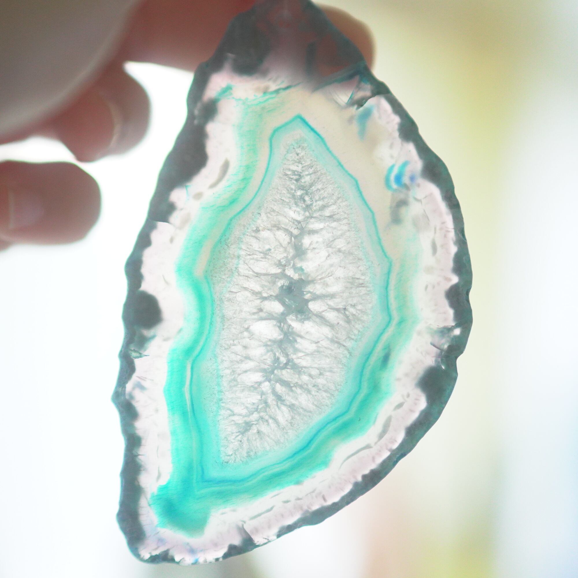 ✧✧✧染色の石なので耐光性(光による経年でのカラー変化の耐性)に優れているわけではなく一日の中で長時間強い日光に当たるような場所に飾られるのはおすすめしないのですが、陽光に透かした時にだけ真価を発揮する美しさがありますので、是非たまに翳したりして光と一緒にお楽しみいただけたらと思っております。特に濃い鮮やかな色など、気になられる場合は、日光のあまり当たらない場所に飾っていただけたらと思います✧✧✧