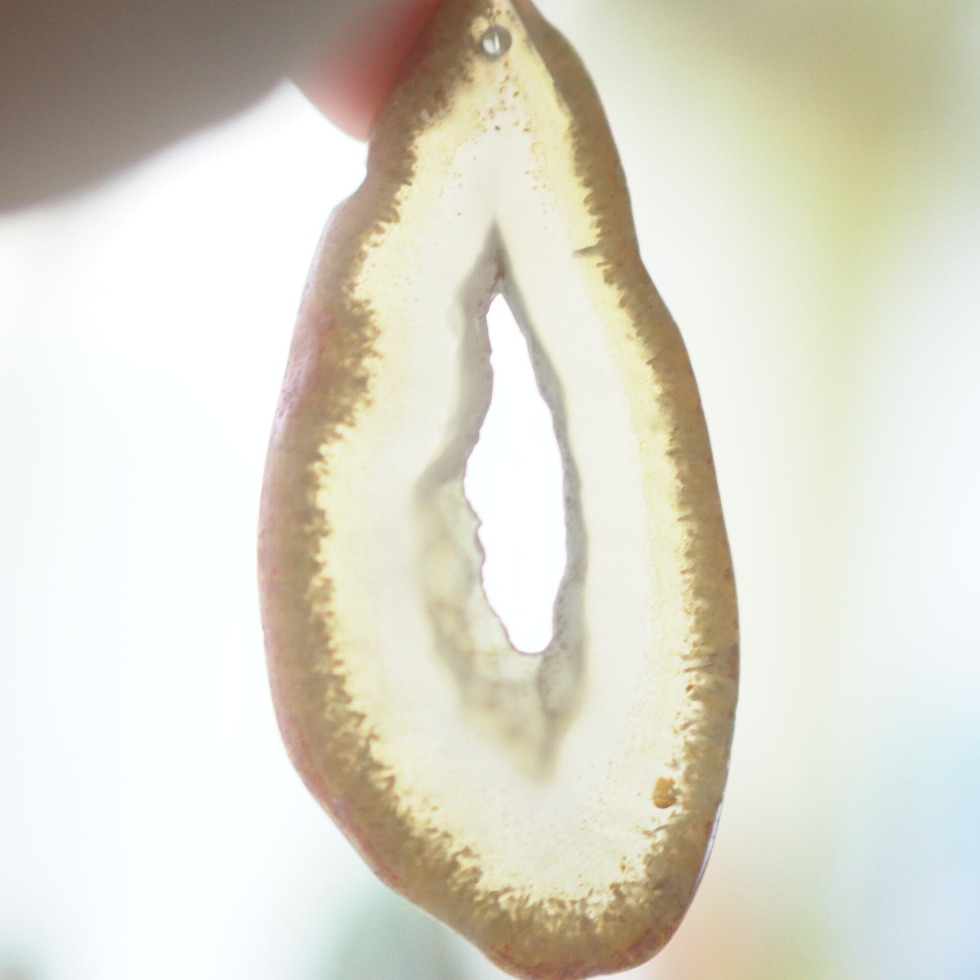 Agate Slice , Natural Wood , Nylon Cord , Metal