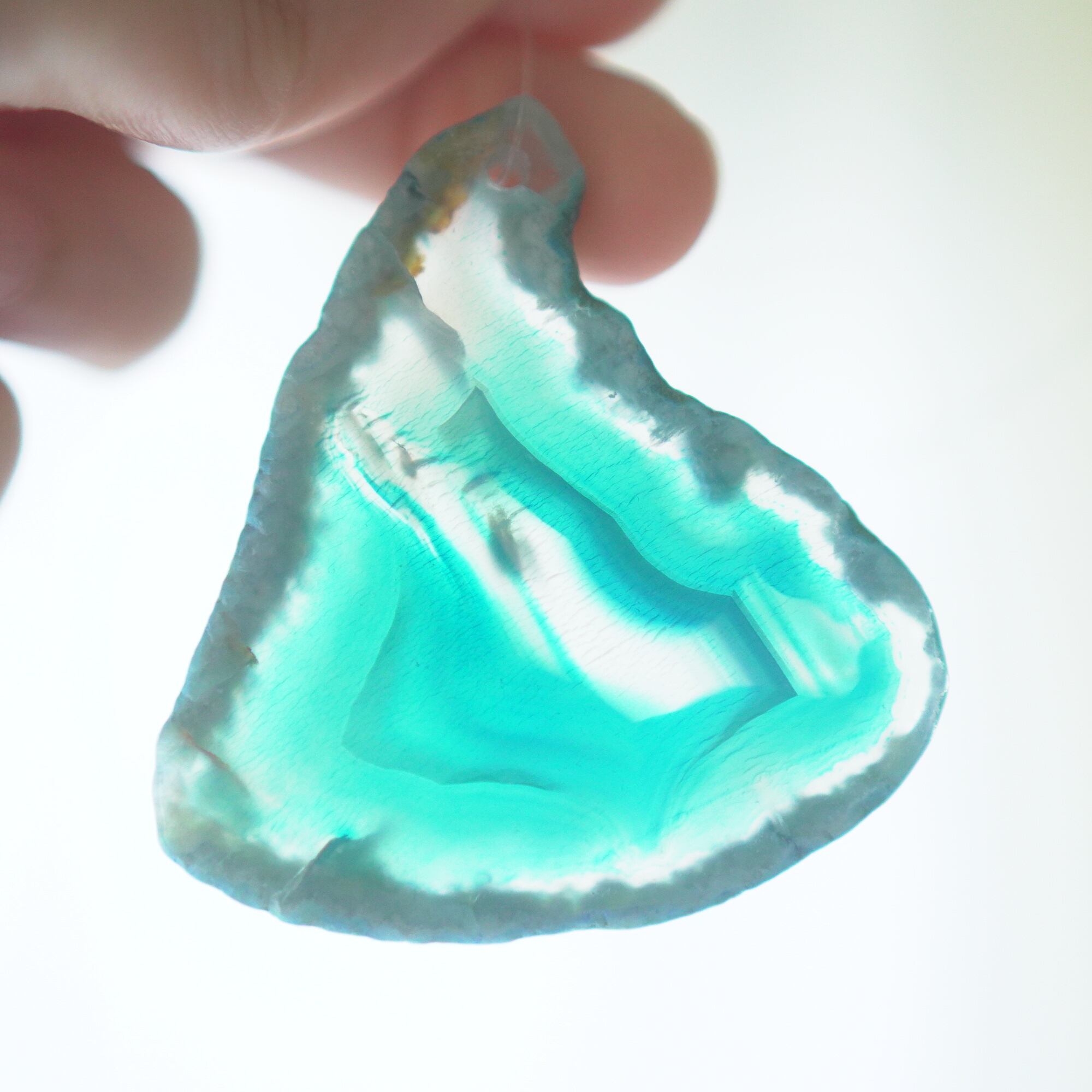 ✧✧✧染色の石なので耐光性(光による経年でのカラー変化の耐性)に優れているわけではなく一日の中で長時間強い日光に当たるような場所に飾られるのはおすすめしないのですが、陽光に透かした時にだけ真価を発揮する美しさがありますので、是非たまに翳したりして光と一緒にお楽しみいただけたらと思っております。特に濃い鮮やかな色など、気になられる場合は、日光のあまり当たらない場所に飾っていただけたらと思います✧✧✧