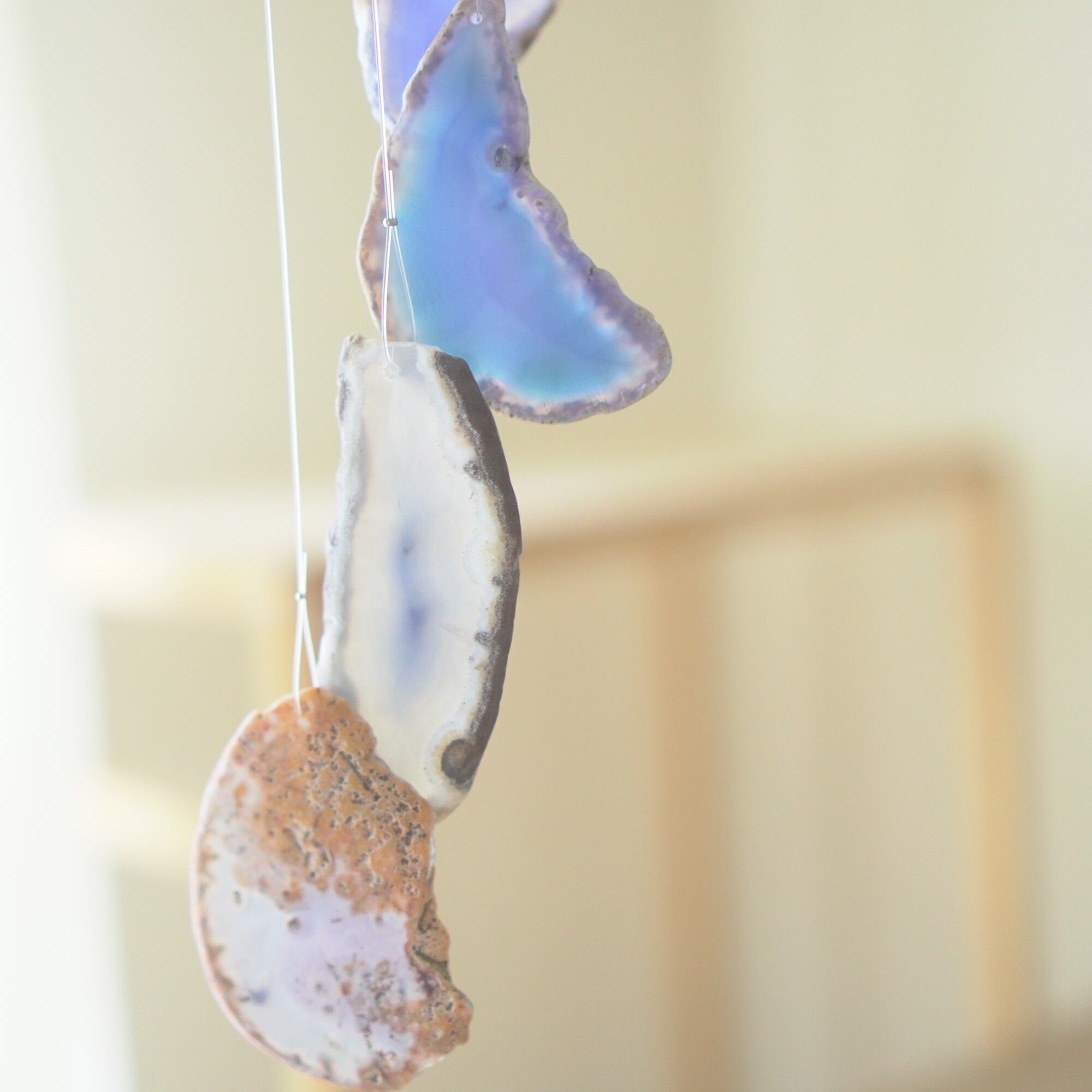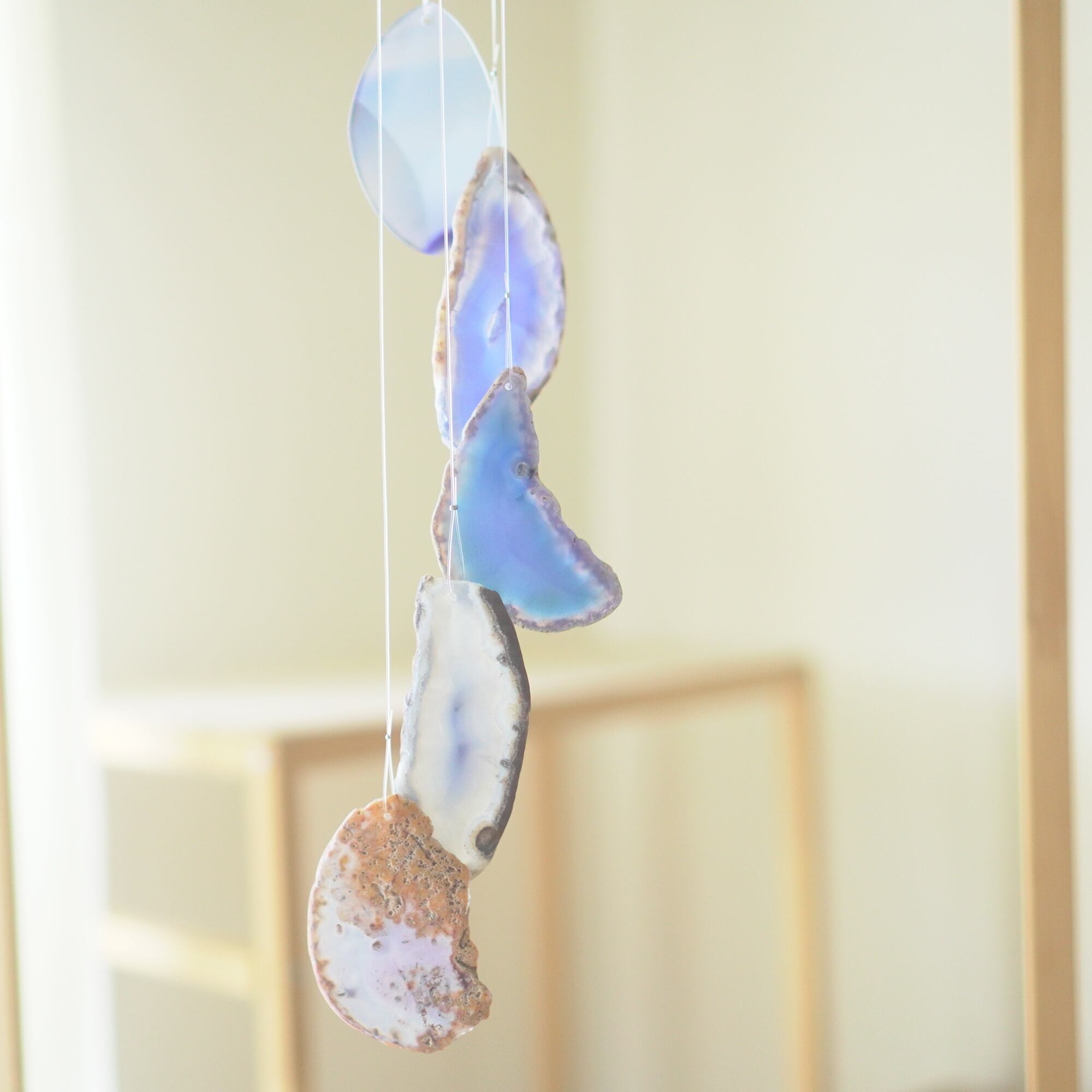 連なるアゲートが風を受けて揺れるとチリンチリン、美しい響きの音が鳴りとても癒されます。