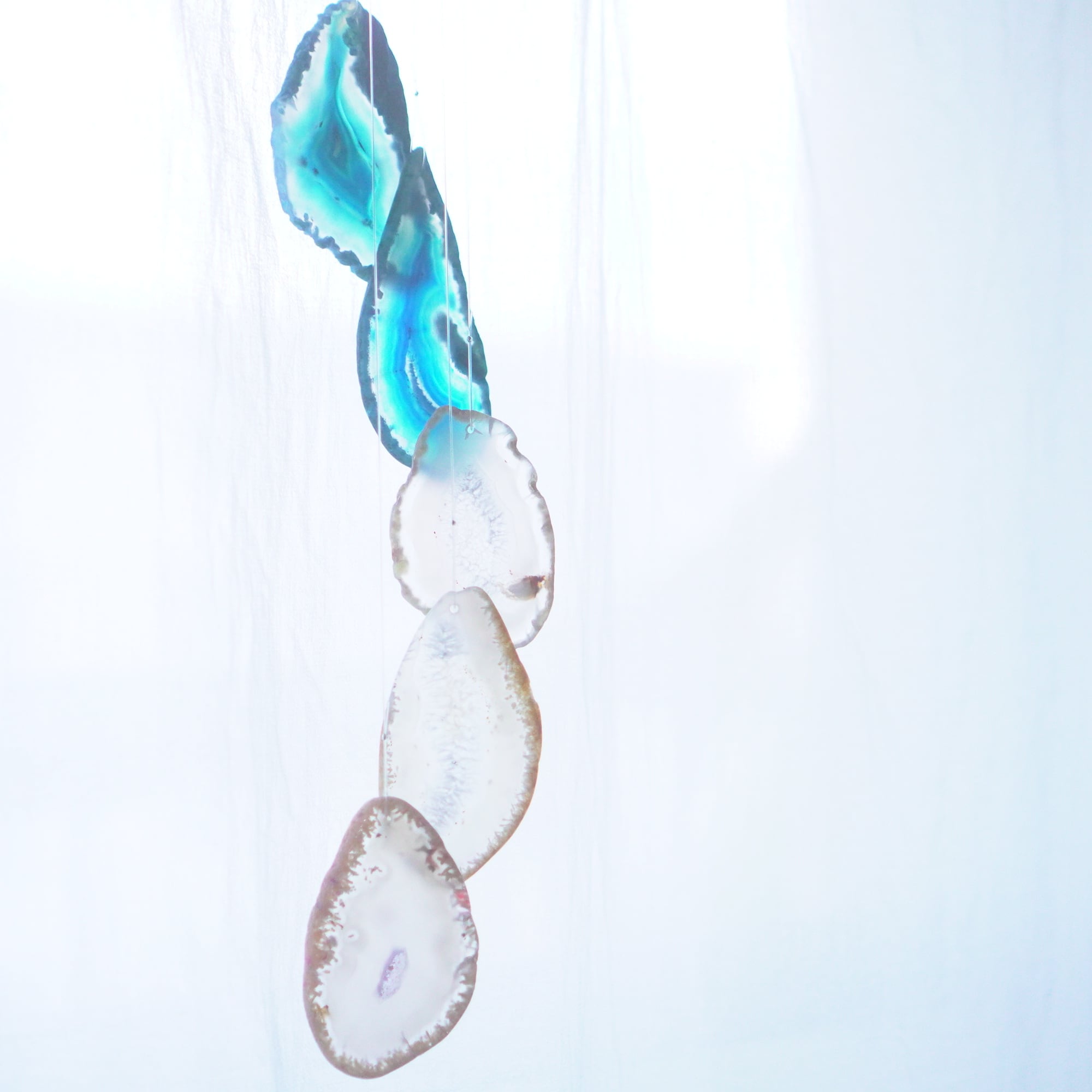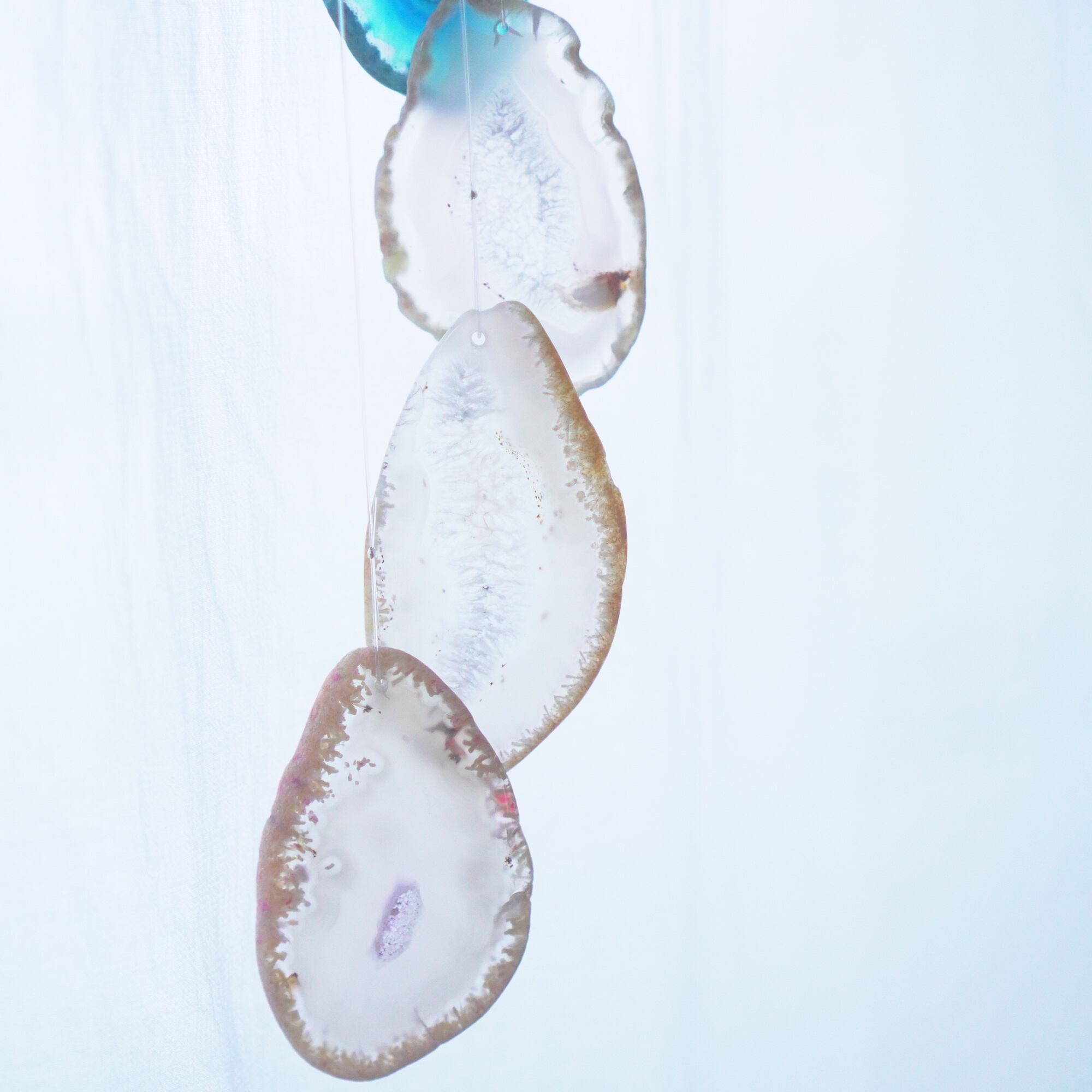 連なるアゲートが風を受けて揺れるとチリンチリン、美しい響きの音が鳴りとても癒されます。