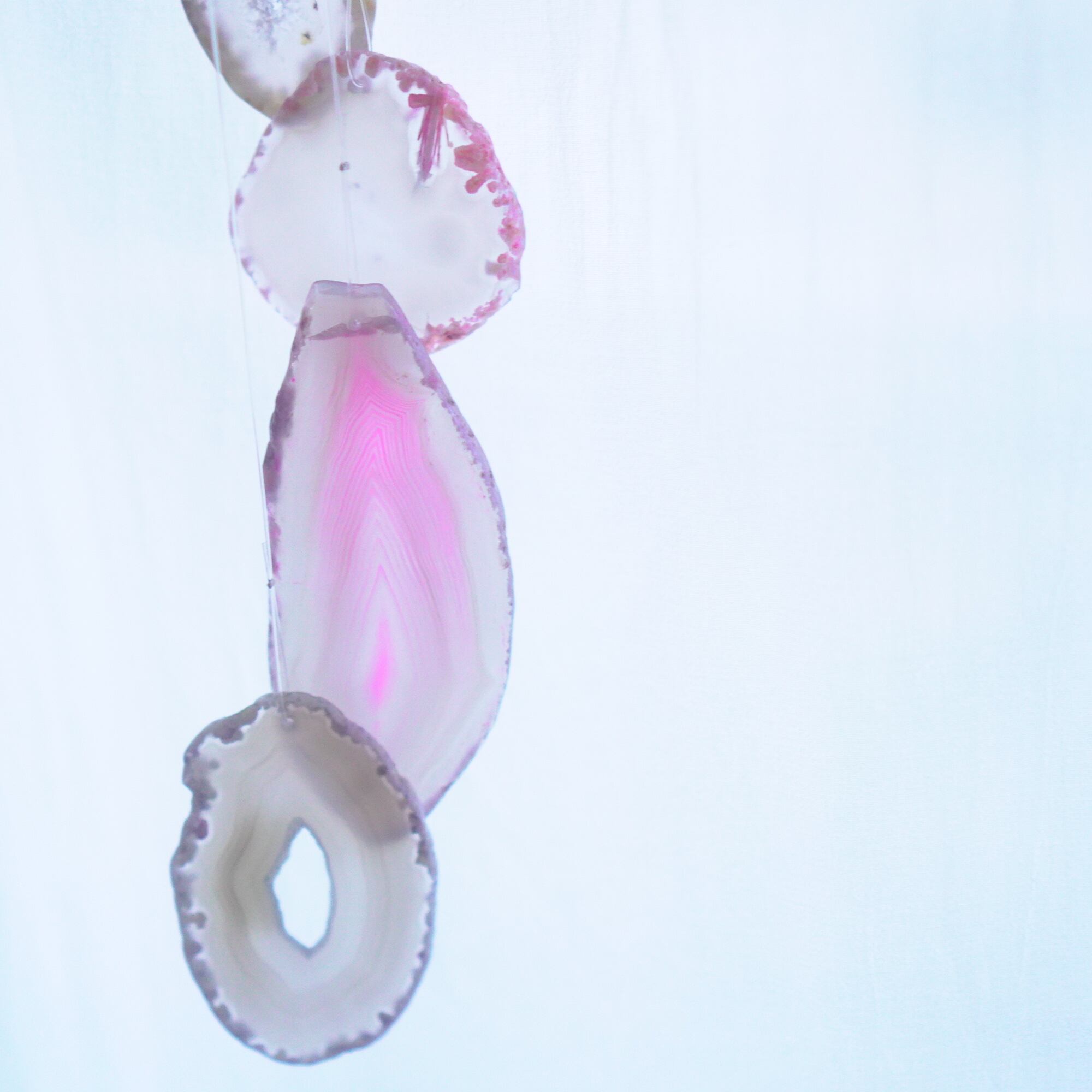 連なるアゲートが風を受けて揺れるとチリンチリン、美しい響きの音が鳴りとても癒されます。