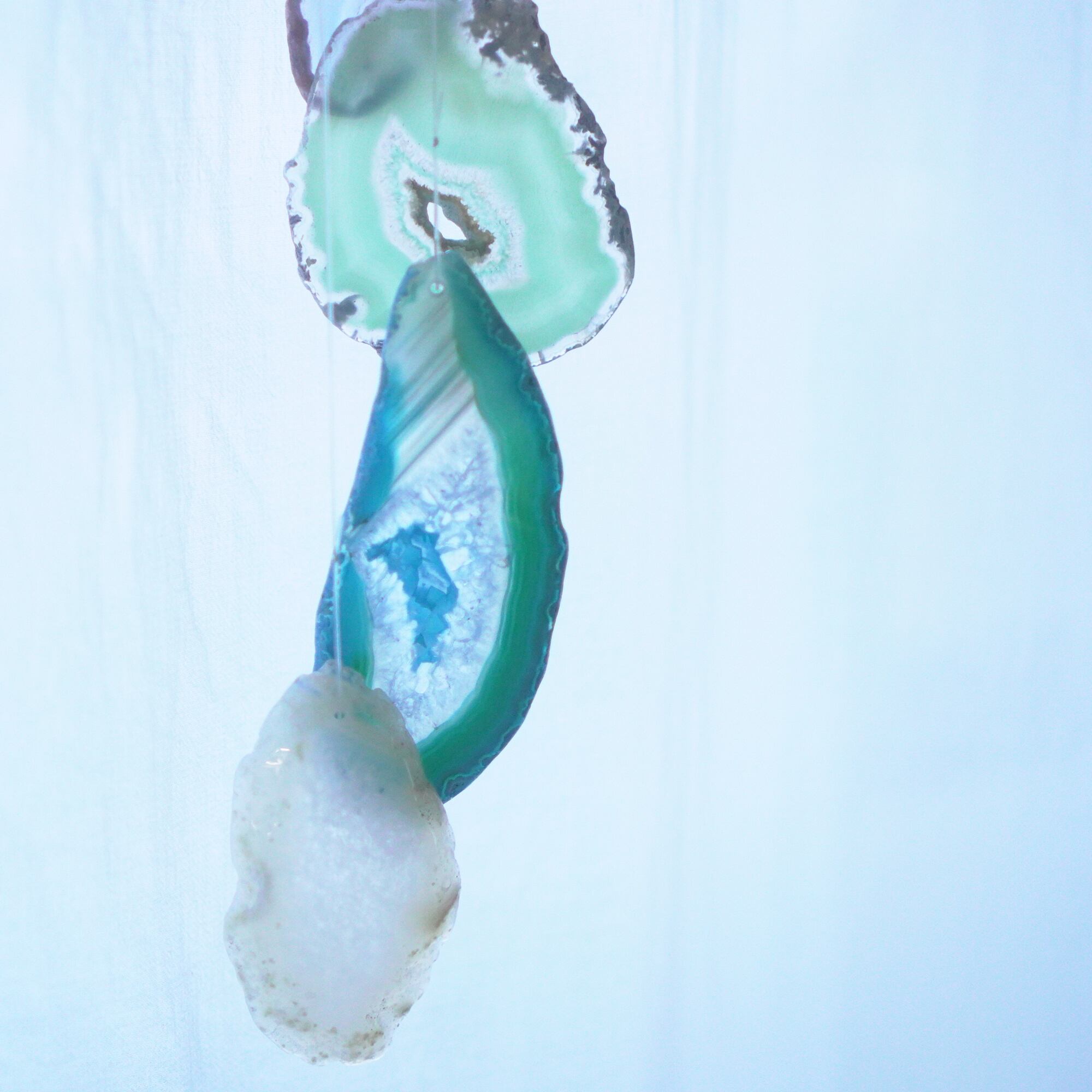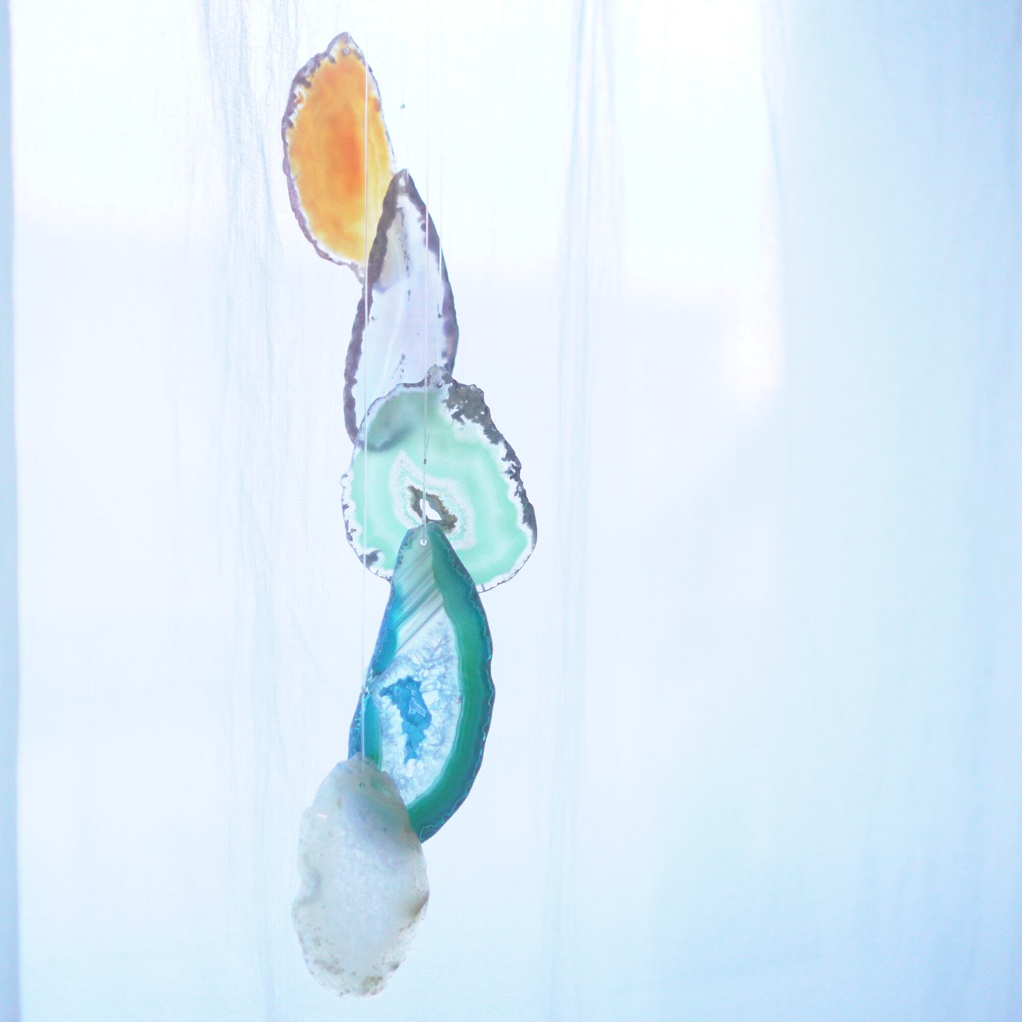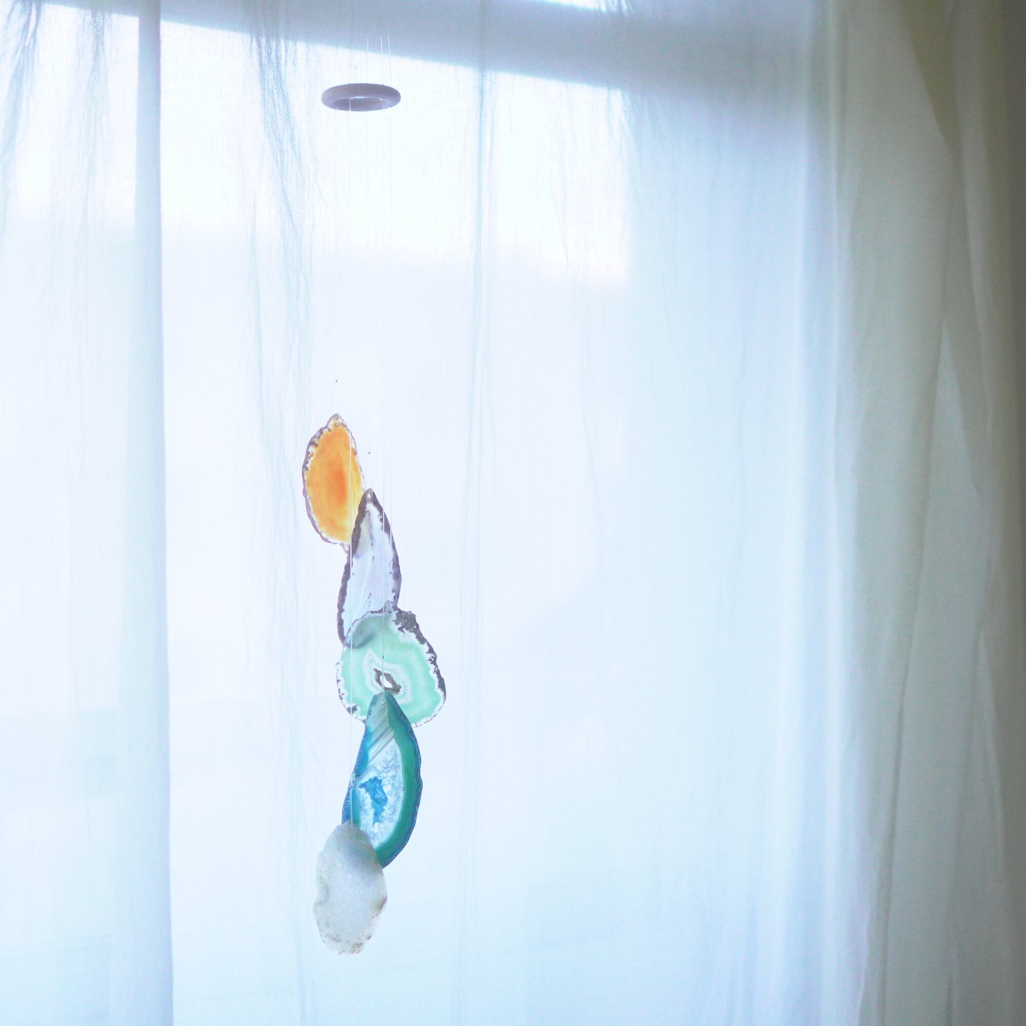 連なるアゲートが風を受けて揺れるとチリンチリン、美しい響きの音が鳴りとても癒されます。