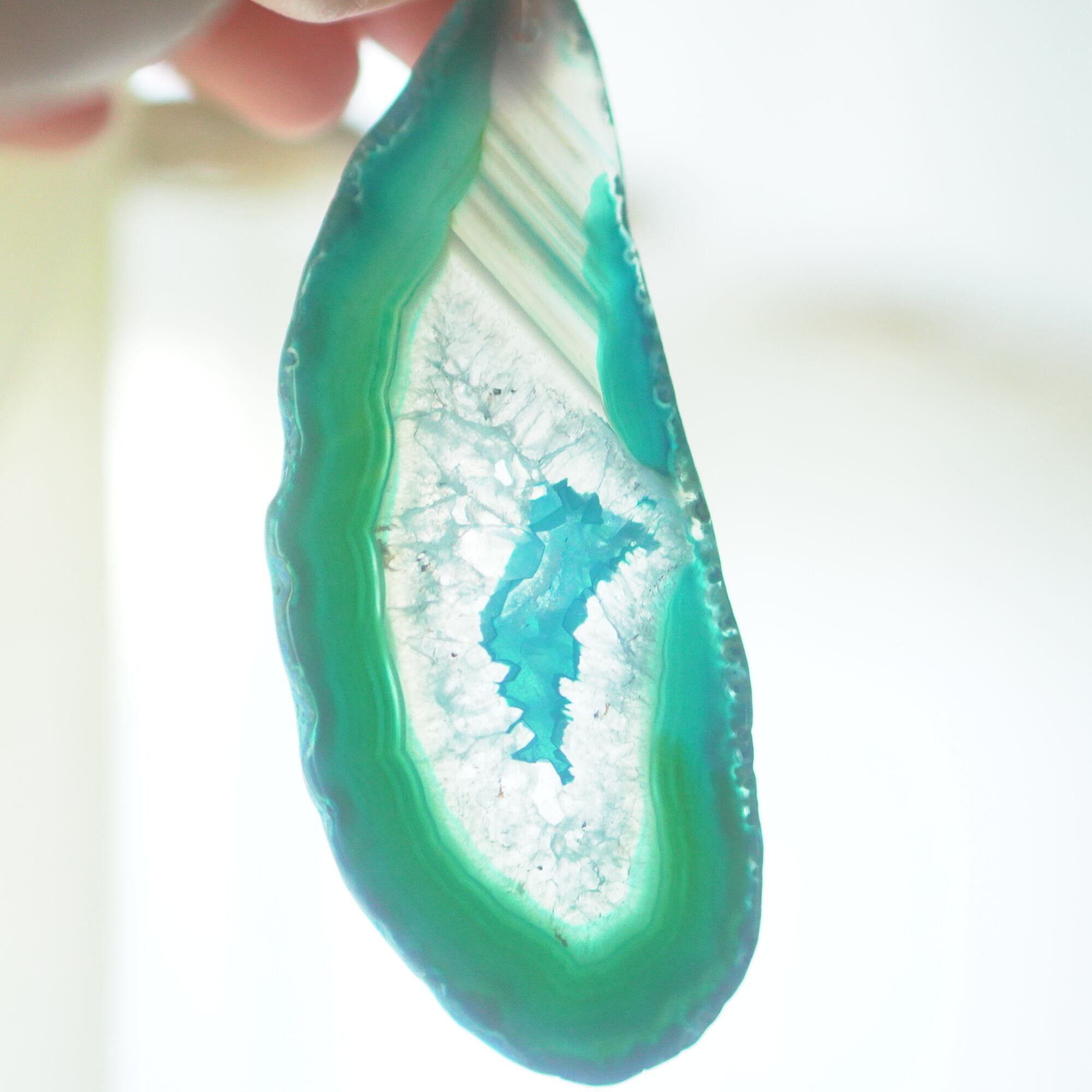 ✧✧✧染色の石なので耐光性(光による経年でのカラー変化の耐性)に優れているわけではなく一日の中で長時間強い日光に当たるような場所に飾られるのはおすすめしないのですが、陽光に透かした時にだけ真価を発揮する美しさがありますので、是非たまに翳したりして光と一緒にお楽しみいただけたらと思っております。特に濃い鮮やかな色など、気になられる場合は、日光のあまり当たらない場所に飾っていただけたらと思います✧✧✧