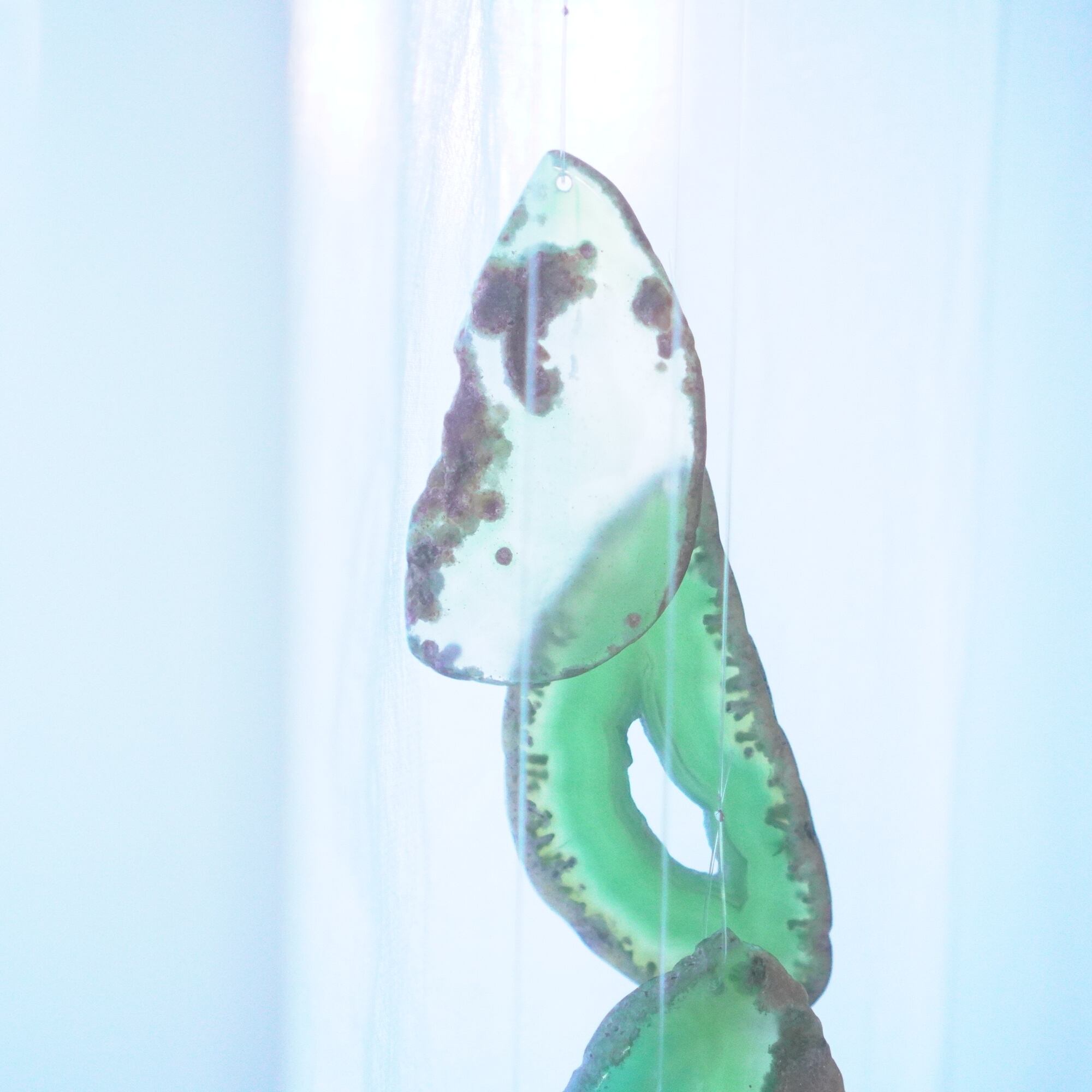 連なるアゲートが風を受けて揺れるとチリンチリン、美しい響きの音が鳴りとても癒されます。