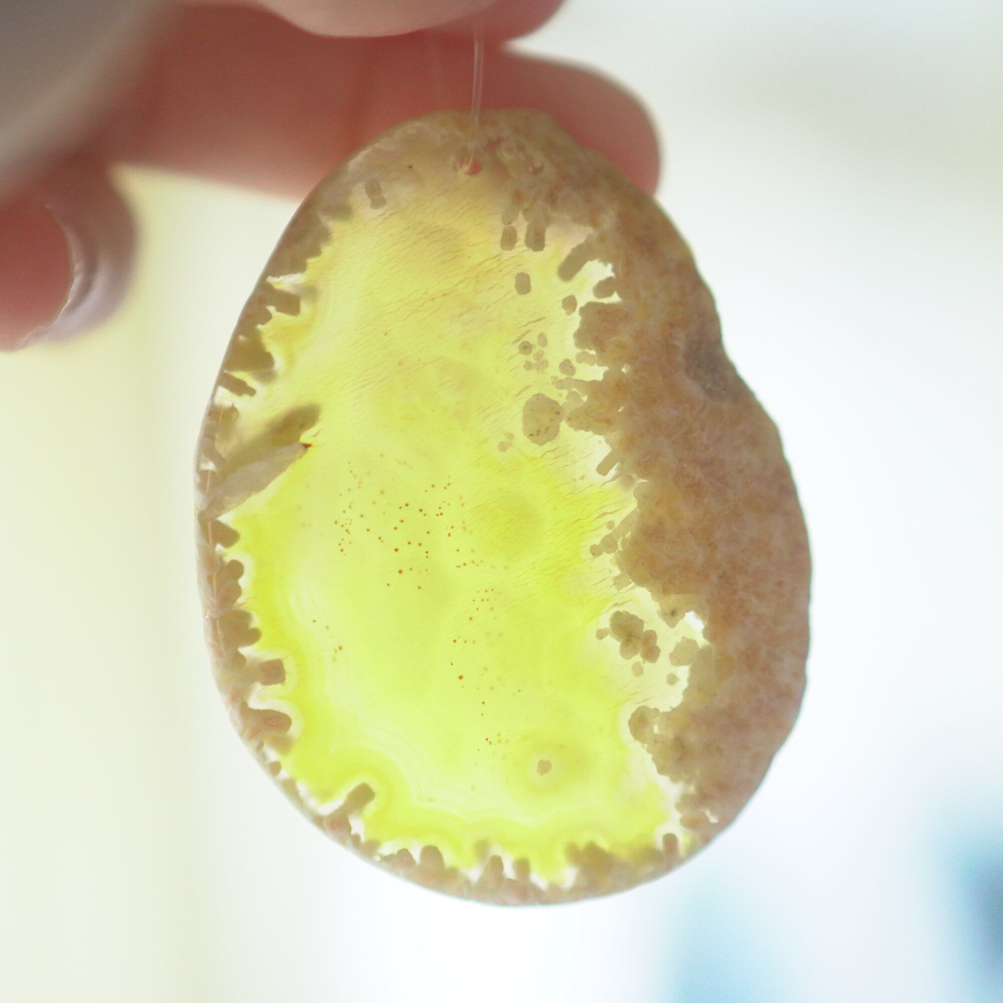 ✧✧✧染色の石なので耐光性(光による経年でのカラー変化の耐性)に優れているわけではなく一日の中で長時間強い日光に当たるような場所に飾られるのはおすすめしないのですが、陽光に透かした時にだけ真価を発揮する美しさがありますので、是非たまに翳したりして光と一緒にお楽しみいただけたらと思っております。特に濃い鮮やかな色など、気になられる場合は、日光のあまり当たらない場所に飾っていただけたらと思います✧✧✧