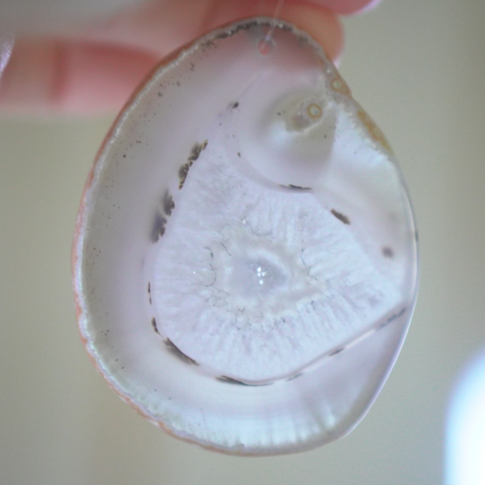 ✧✧✧瑪瑙の濃い色は染色によるもので、水に濡れたり布で擦ると多少色落ちします。飾るものなので大丈夫かと思いますが白いお洋服などには触れないようにされてください。汚れが気になる時は若干の色落ち前提で水を軽く含ませた布やティッシュでやさしく拭いていただくことは大丈夫です。また、画像のような細かなヒビ・カケはスライスメノウの加工上かなり多くあるので、チャイムとしての機能や全体の外観を著しく損なうものを除き、見た目の完璧さ<音色の響き重視で選んで使用しております、よろしくお願い致します✧✧✧