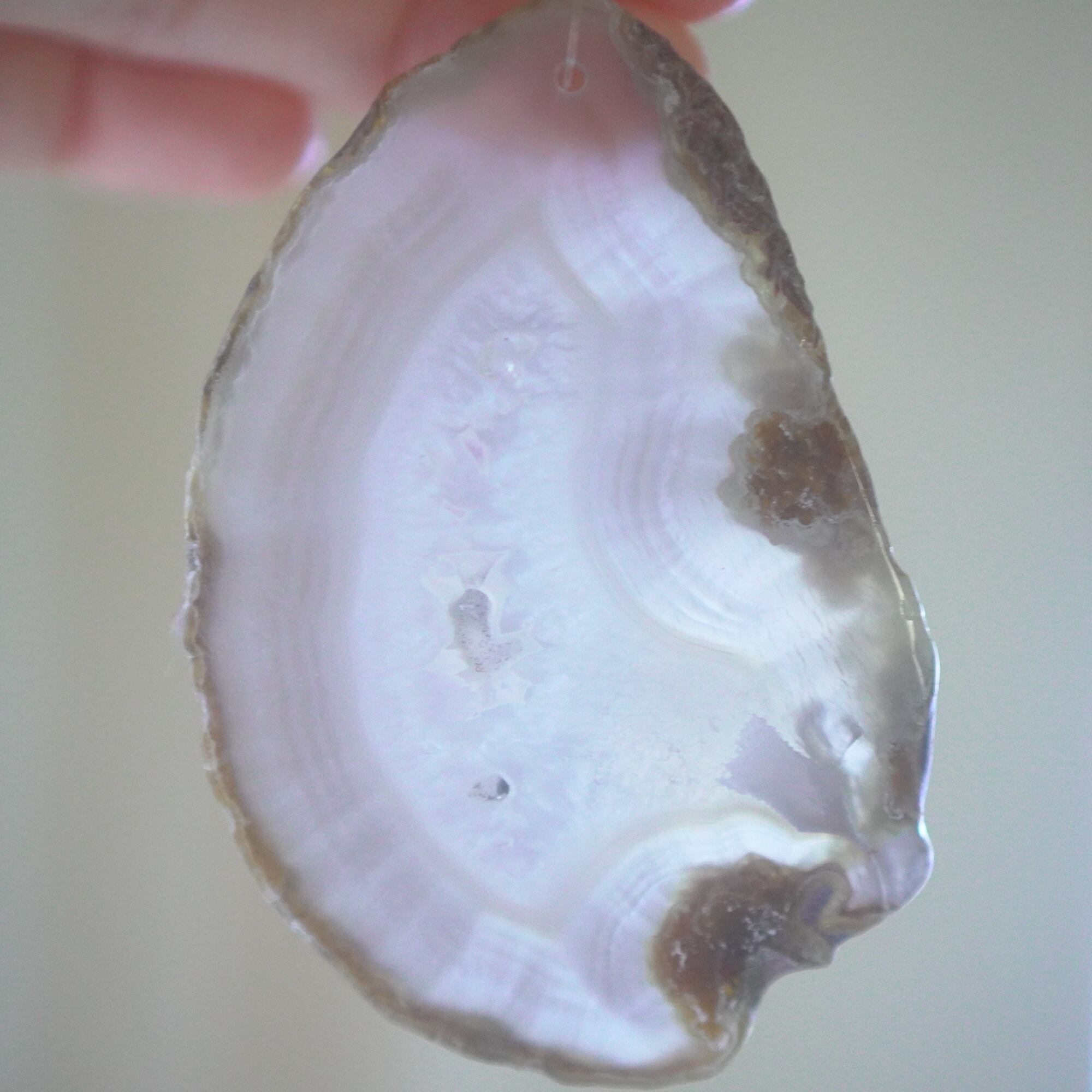 Agate Slice , Natural Wood , Nylon Cord , Metal