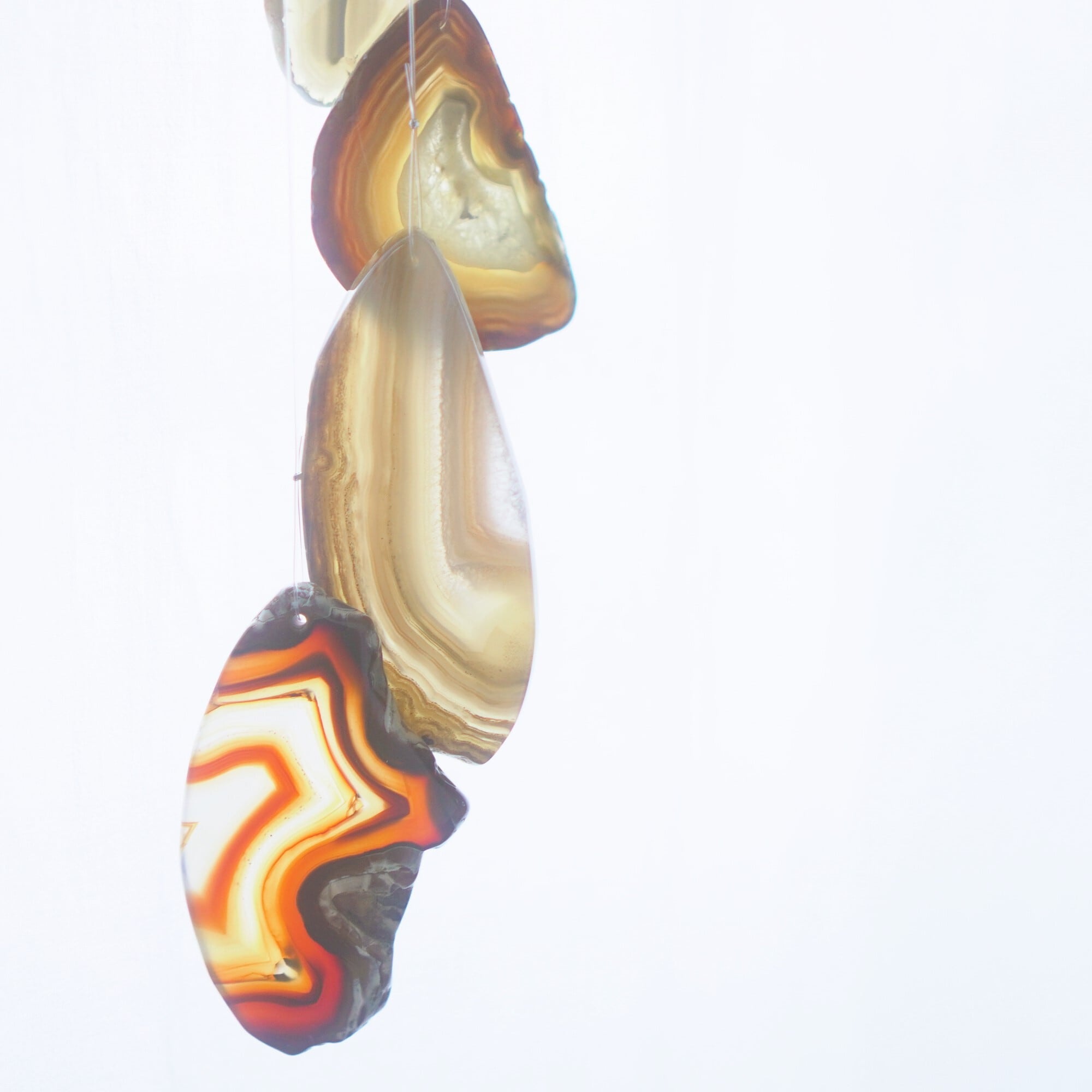 連なるアゲートが風を受けて揺れるとチリンチリン、美しい響きの音が鳴りとても癒されます。