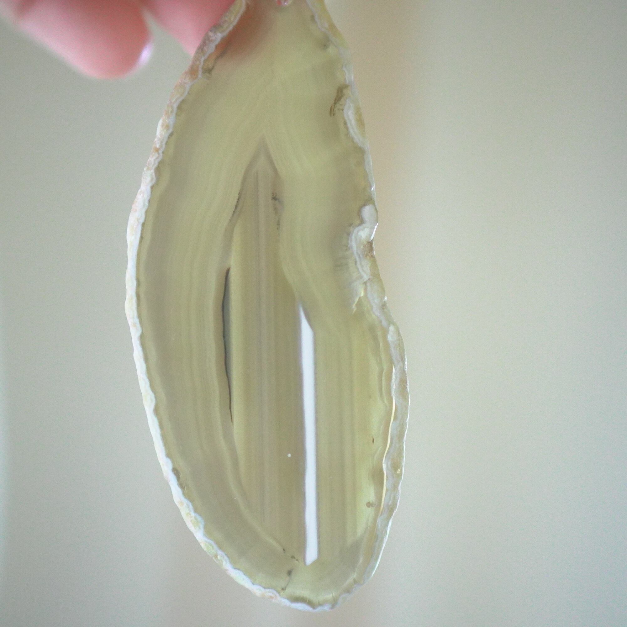 ✧✧✧瑪瑙の濃い色は染色によるもので、水に濡れたり布で擦ると多少色落ちします。飾るものなので大丈夫かと思いますが白いお洋服などには触れないようにされてください。汚れが気になる時は若干の色落ち前提で水を軽く含ませた布やティッシュでやさしく拭いていただくことは大丈夫です。また、画像のような細かなヒビ・カケはスライスメノウの加工上かなり多くあるので、チャイムとしての機能や全体の外観を著しく損なうものを除き、見た目の完璧さ<音色の響き重視で選んで使用しております、よろしくお願い致します✧✧✧