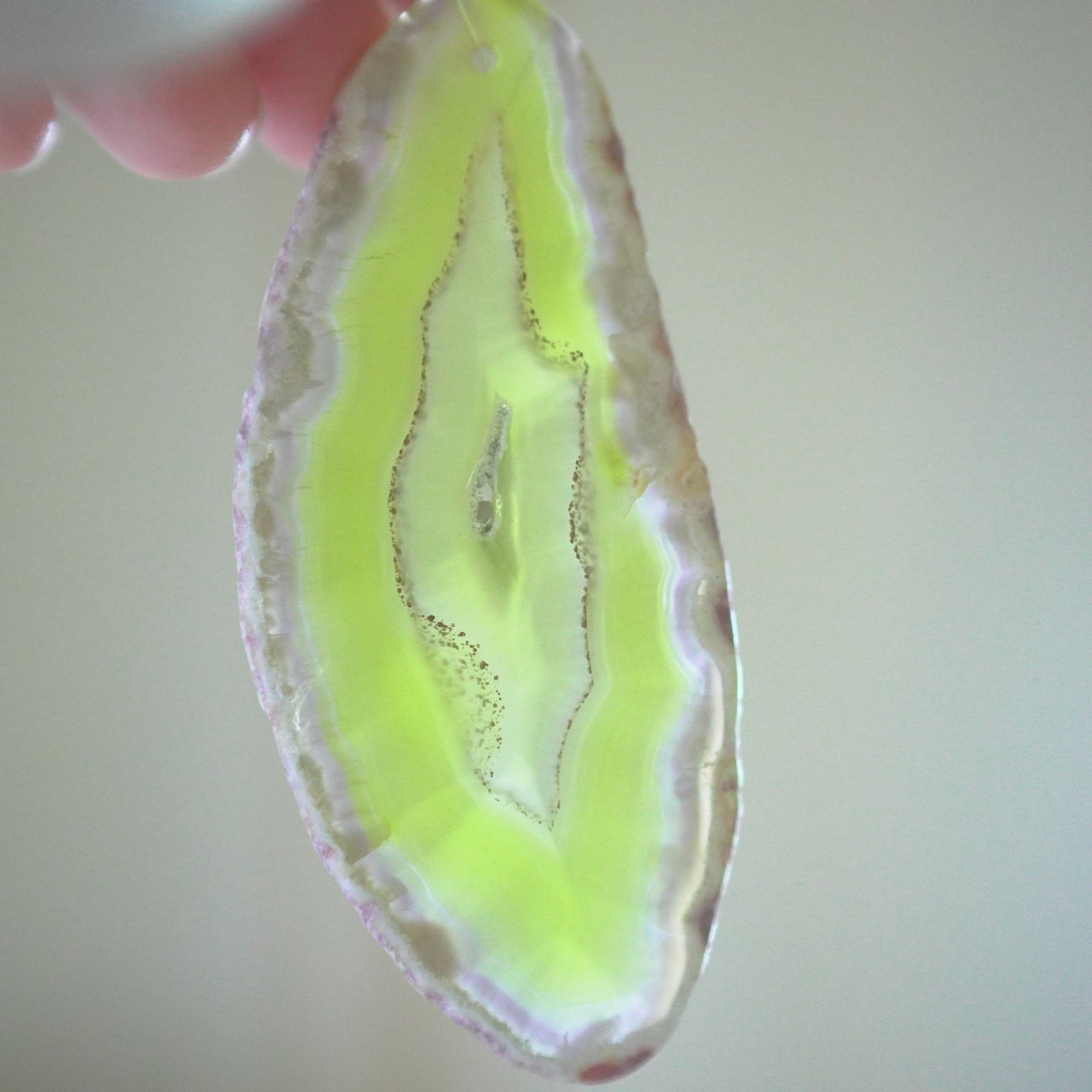 ✧染色の石なので耐光性(光による経年でのカラー変化の耐性)に優れているわけではなくベランダなど一日の中で長時間強い日光に当たるような場所に飾られるのはおすすめしないのですが、陽光に透かした時にだけ真価を発揮する美しさがありますので、是非、時折翳したりして光と一緒にお楽しみいただけたらと思います。特に濃い鮮やかな色など、色変化が気になられる場合は、日光のあまり当たらない場所に飾ってくださいね✧