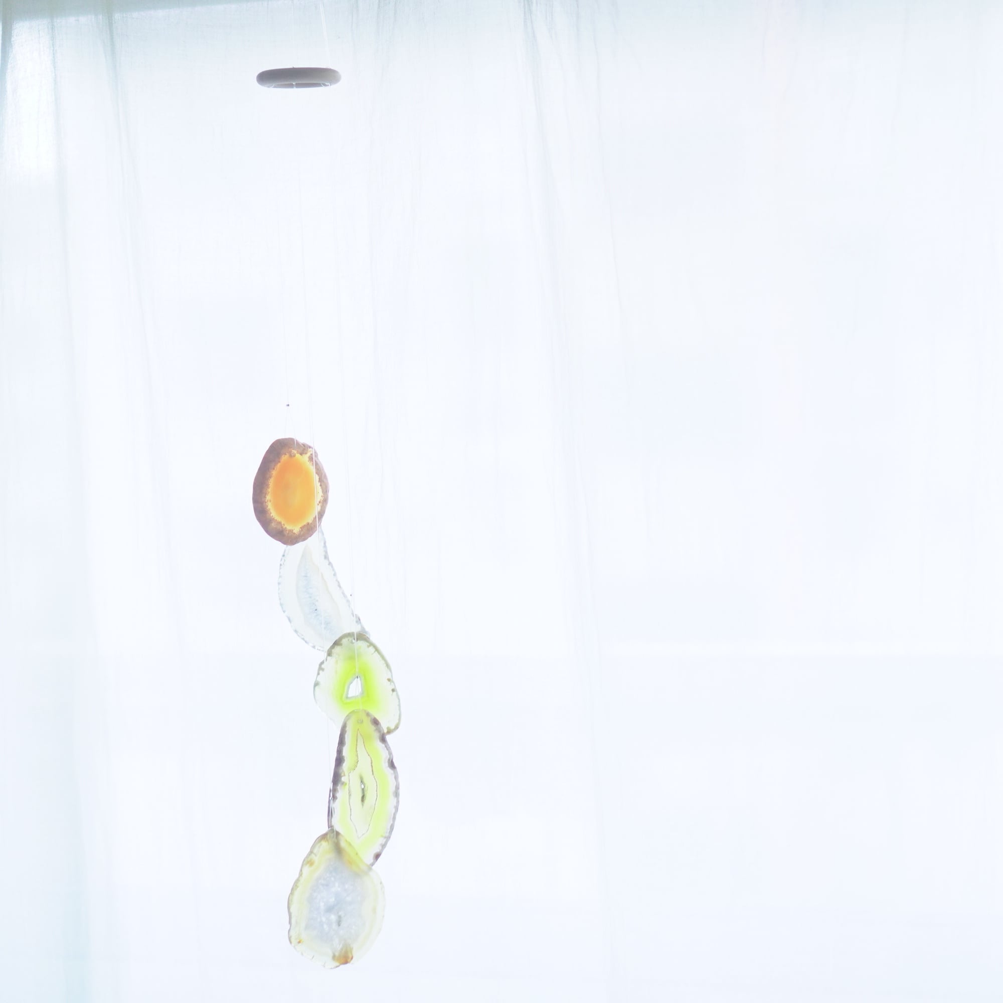連なるアゲートが風を受けて揺れるとチリンチリン、美しい響きの音が鳴りとても癒されます。