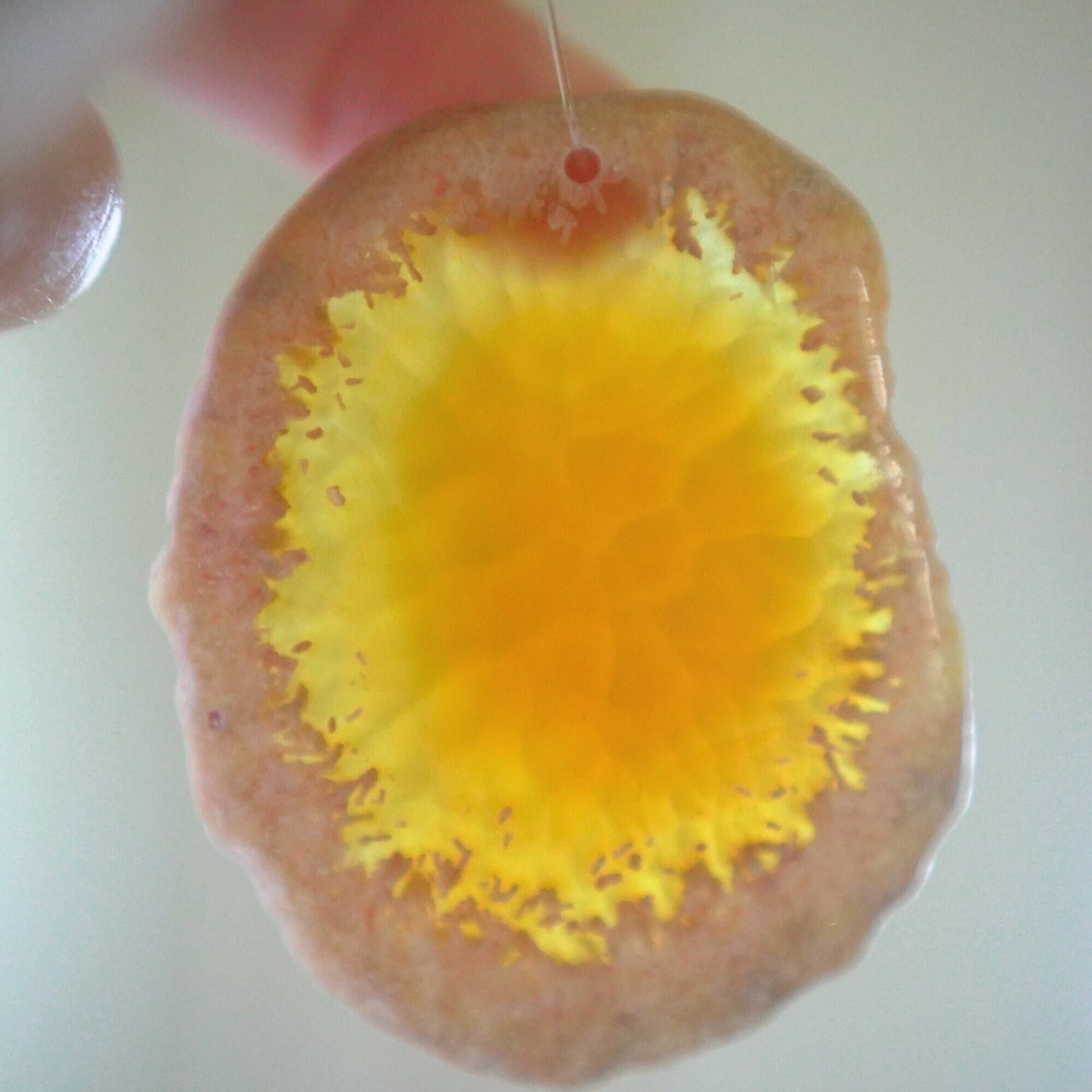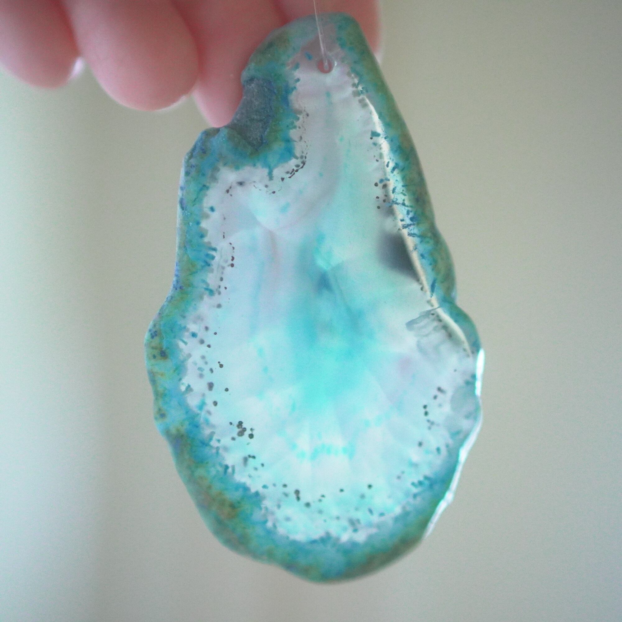 ✧✧✧染色の石なので耐光性(光による経年でのカラー変化の耐性)に優れているわけではなく一日の中で長時間強い日光に当たるような場所に飾られるのはおすすめしないのですが、陽光に透かした時にだけ真価を発揮する美しさがありますので、是非たまに翳したりして光と一緒にお楽しみいただけたらと思っております。特に濃い鮮やかな色など、気になられる場合は、日光のあまり当たらない場所に飾っていただけたらと思います✧✧✧