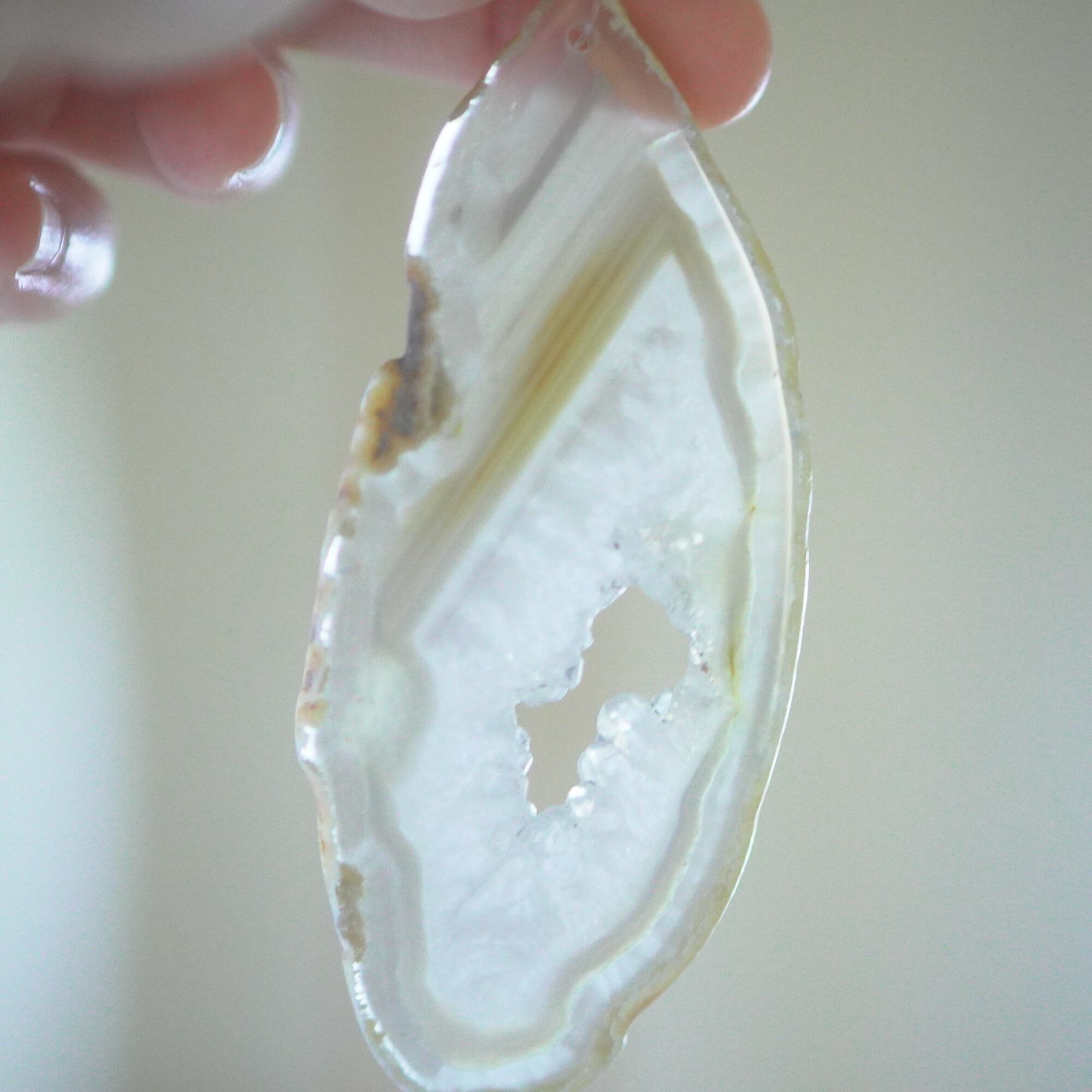 ✧✧✧瑪瑙の濃い色は染色によるもので、水に濡れたり布で擦ると多少色落ちします。飾るものなので大丈夫かと思いますが白いお洋服などには触れないようにされてください。汚れが気になる時は若干の色落ち前提で水を軽く含ませた布やティッシュでやさしく拭いていただくことは大丈夫です。また、画像のような細かなヒビ・カケはスライスメノウの加工上かなり多くあるので、チャイムとしての機能や全体の外観を著しく損なうものを除き、見た目の完璧さ<音色の響き重視で選んで使用しております、よろしくお願い致します✧✧✧