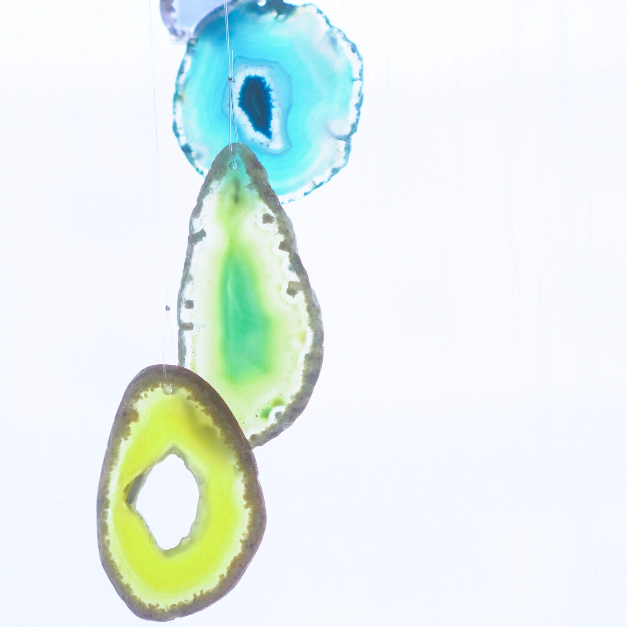 連なるアゲートが風を受けて揺れるとチリンチリン、美しい響きの音が鳴りとても癒されます。