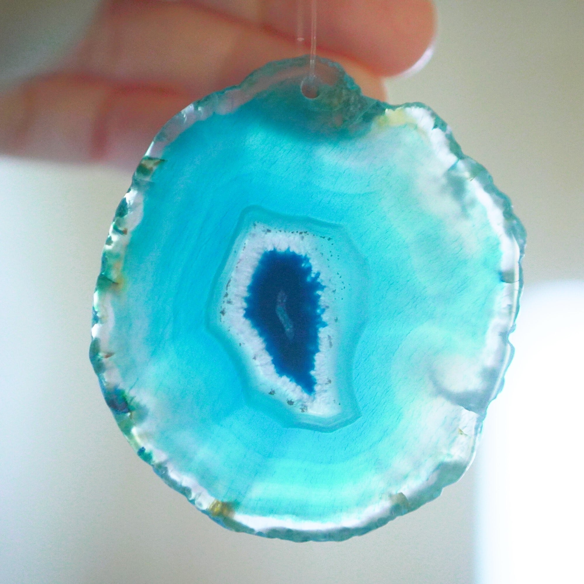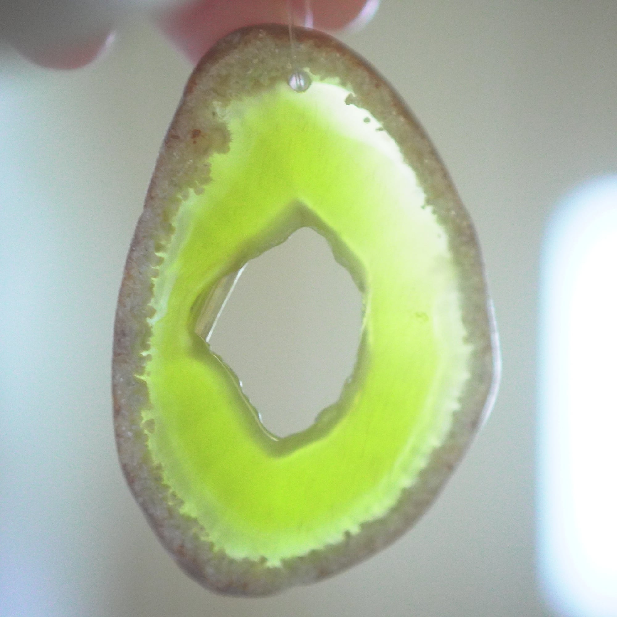 ✧✧✧染色の石なので耐光性(光による経年でのカラー変化の耐性)に優れているわけではなく一日の中で長時間強い日光に当たるような場所に飾られるのはおすすめしないのですが、陽光に透かした時にだけ真価を発揮する美しさがありますので、是非たまに翳したりして光と一緒にお楽しみいただけたらと思っております。特に濃い鮮やかな色など、気になられる場合は、日光のあまり当たらない場所に飾っていただけたらと思います✧✧✧