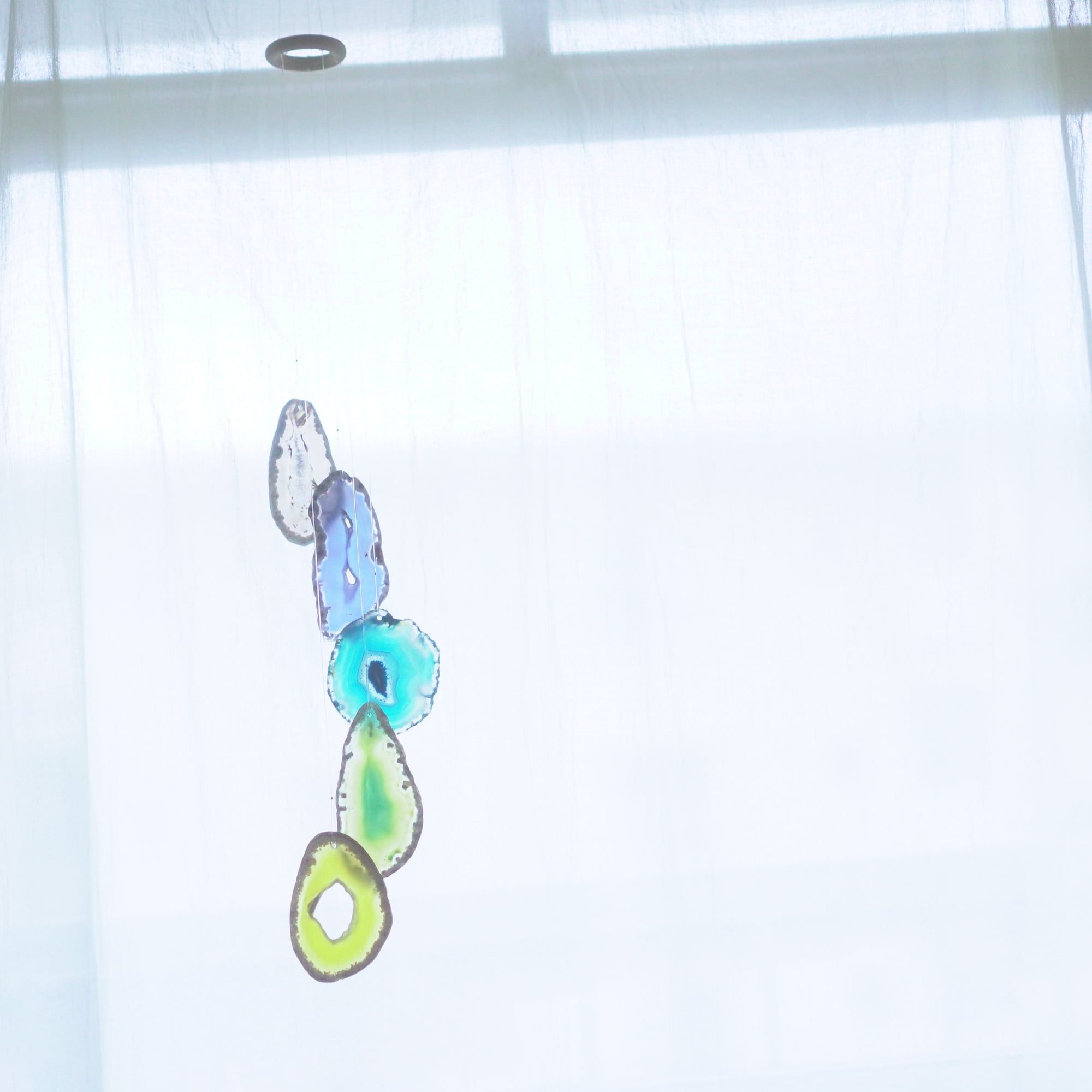 そしてカーテン越しではなく直射日光を当てた際のサンキャッチャーとしてのチャイムも、美しい光をお部屋の中に運んでくれます。