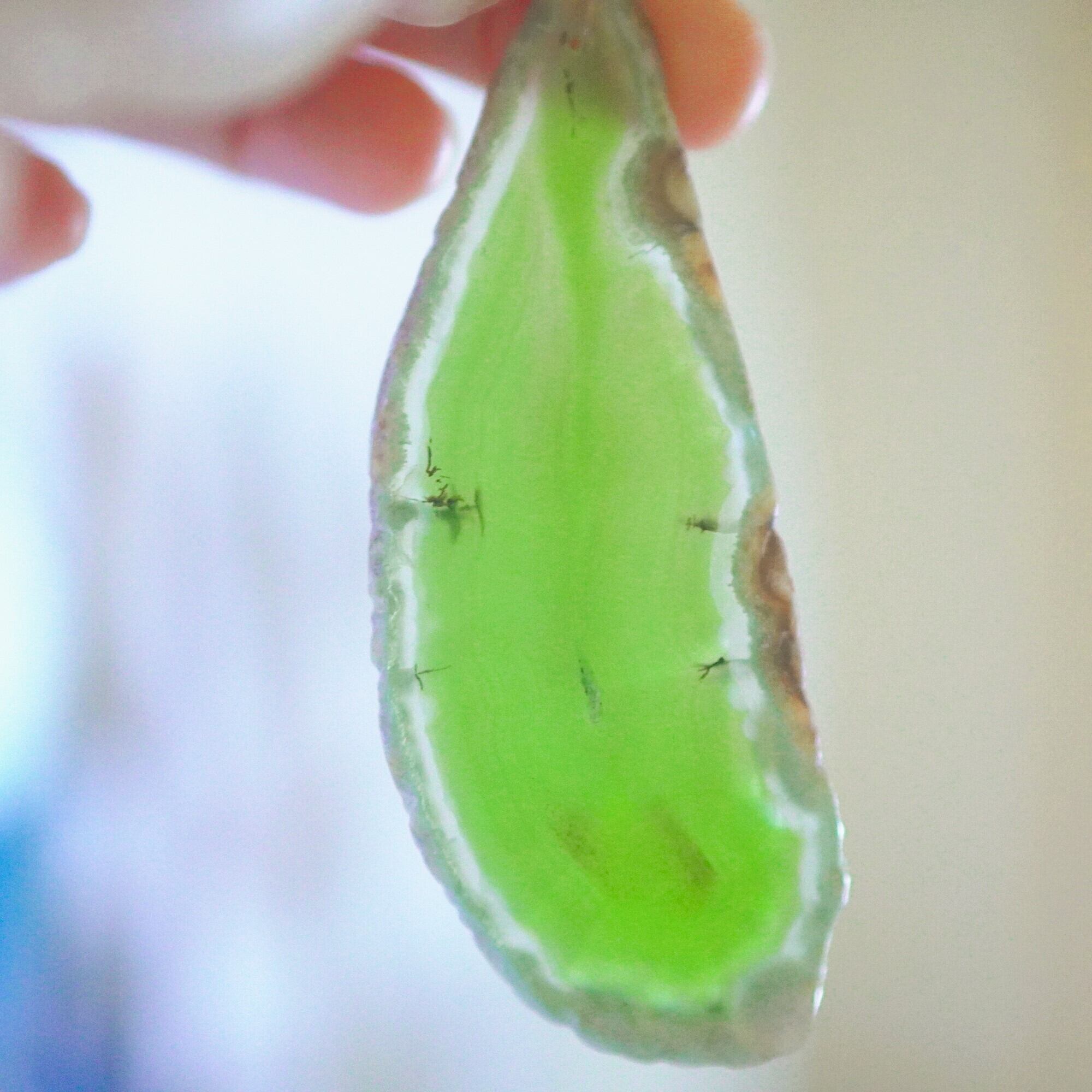 ✧✧✧染色の石なので耐光性(光による経年でのカラー変化の耐性)に優れているわけではなく一日の中で長時間強い日光に当たるような場所に飾られるのはおすすめしないのですが、陽光に透かした時にだけ真価を発揮する美しさがありますので、是非たまに翳したりして光と一緒にお楽しみいただけたらと思っております。特に濃い鮮やかな色など、気になられる場合は、日光のあまり当たらない場所に飾っていただけたらと思います✧✧✧