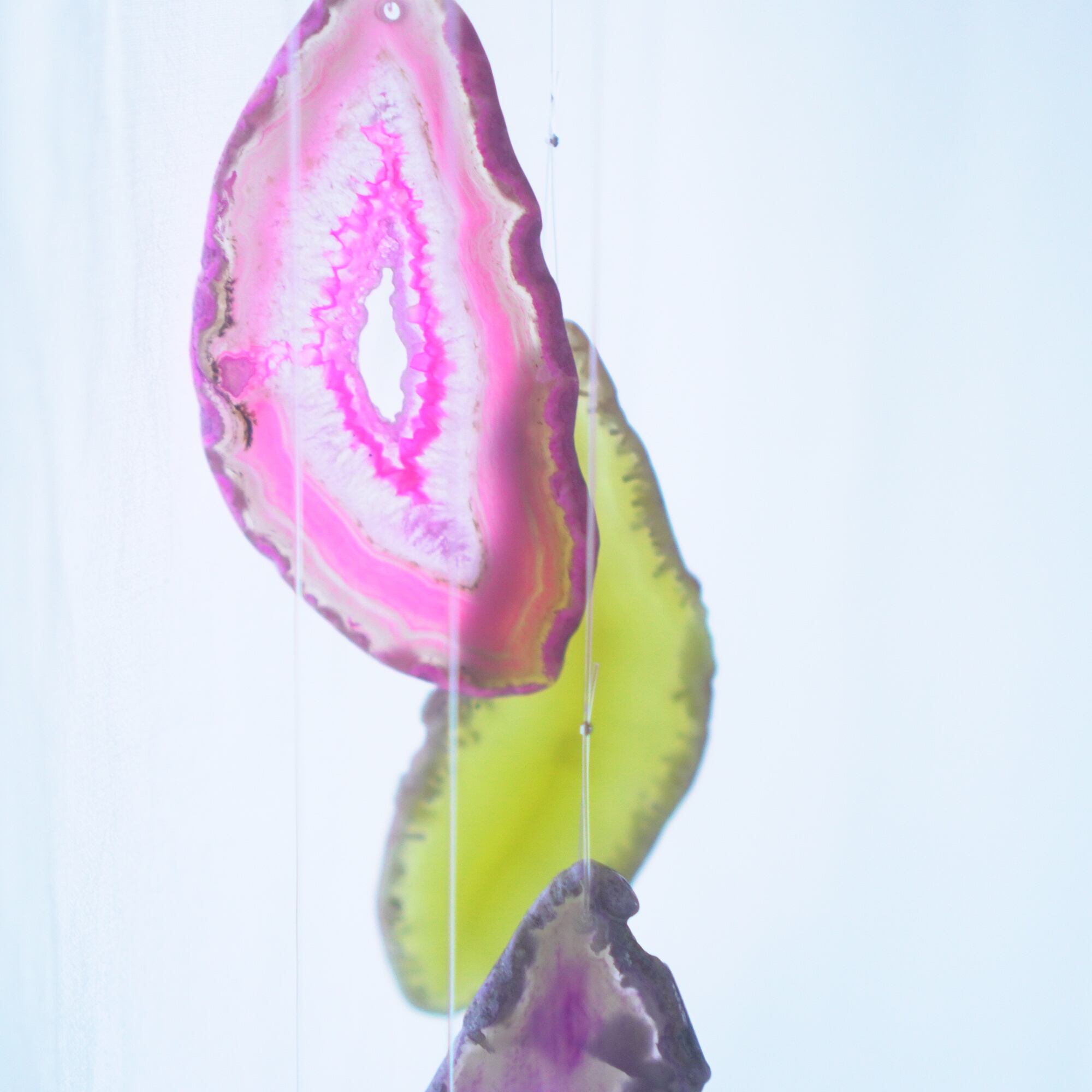 連なるアゲートが風を受けて揺れるとチリンチリン、美しい響きの音が鳴りとても癒されます。