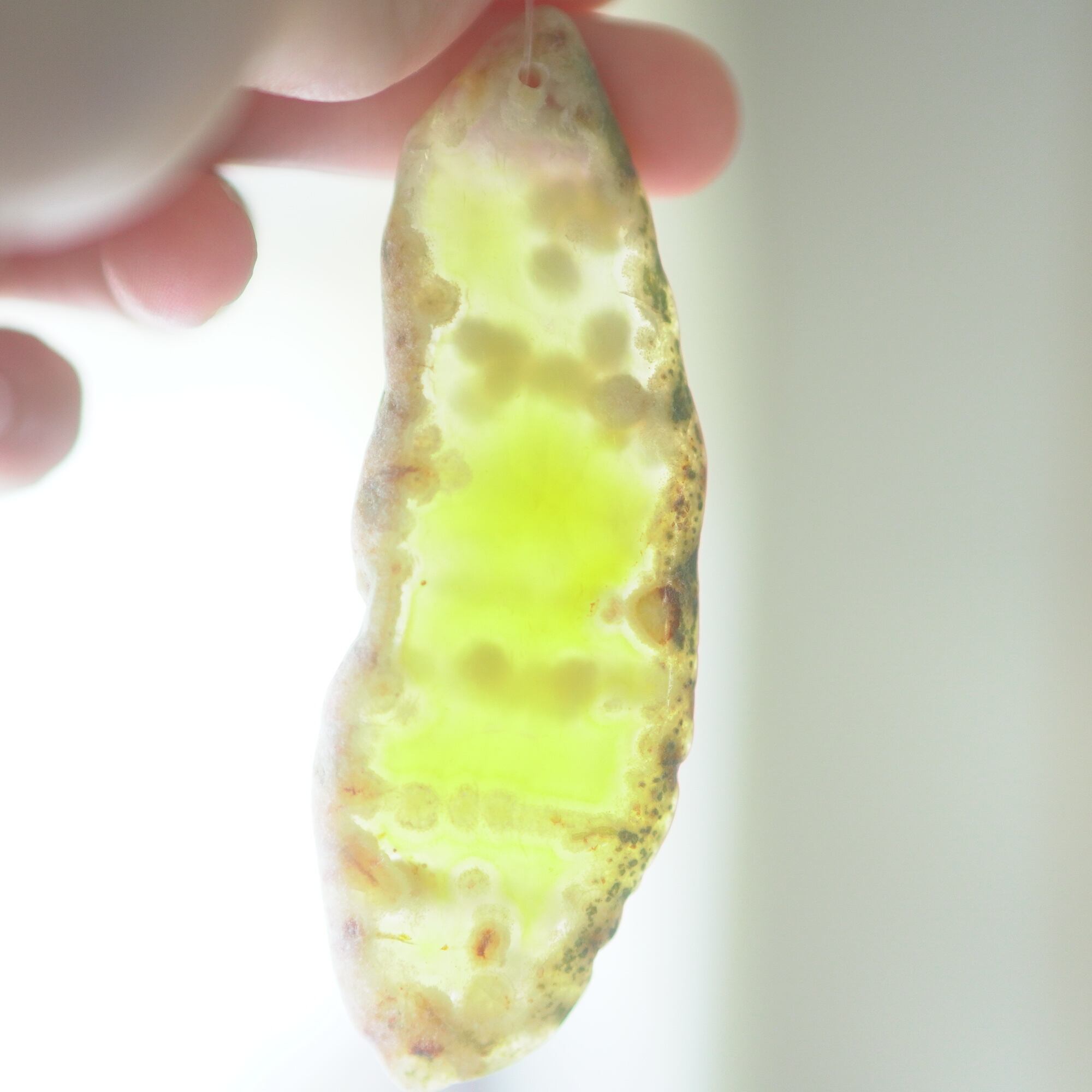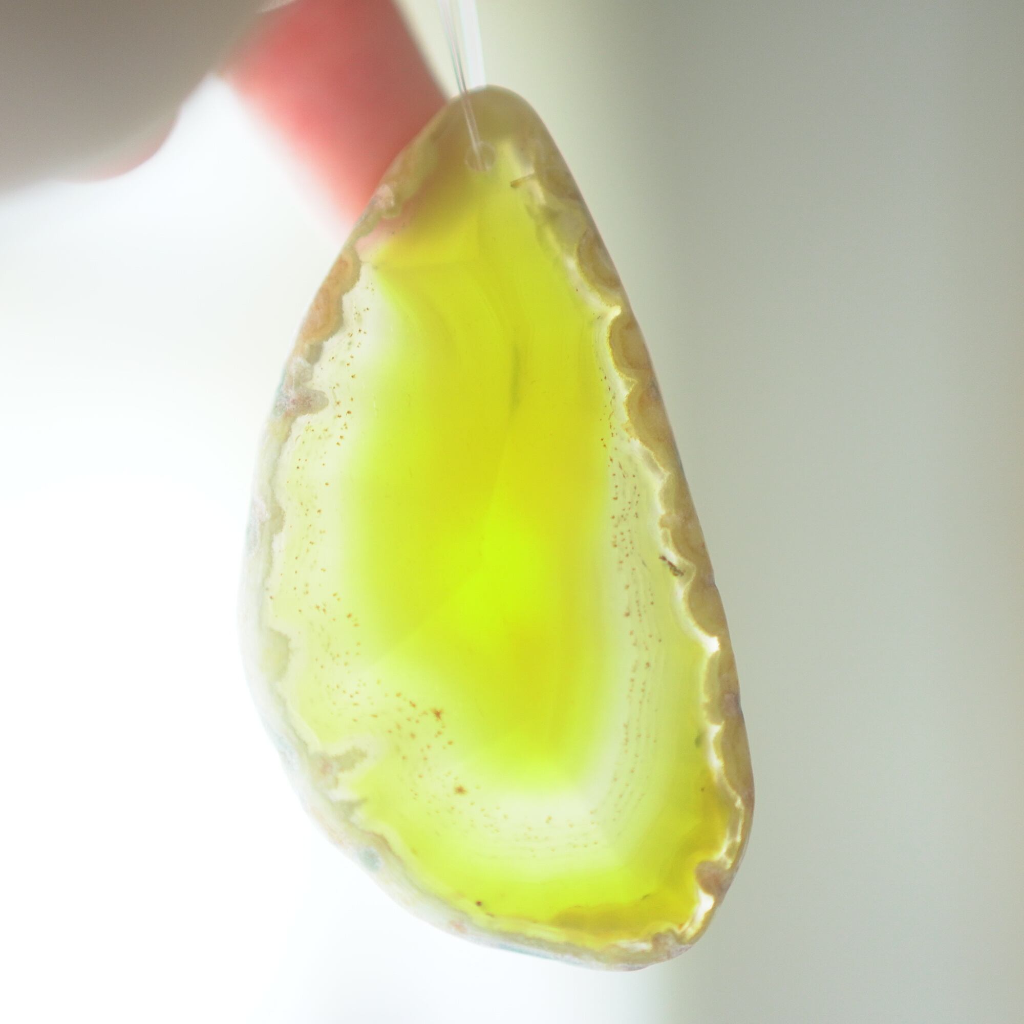 ✧✧✧染色の石なので耐光性(光による経年でのカラー変化の耐性)に優れているわけではなく一日の中で長時間強い日光に当たるような場所に飾られるのはおすすめしないのですが、陽光に透かした時にだけ真価を発揮する美しさがありますので、是非たまに翳したりして光と一緒にお楽しみいただけたらと思っております。特に濃い鮮やかな色など、気になられる場合は、日光のあまり当たらない場所に飾っていただけたらと思います✧✧✧