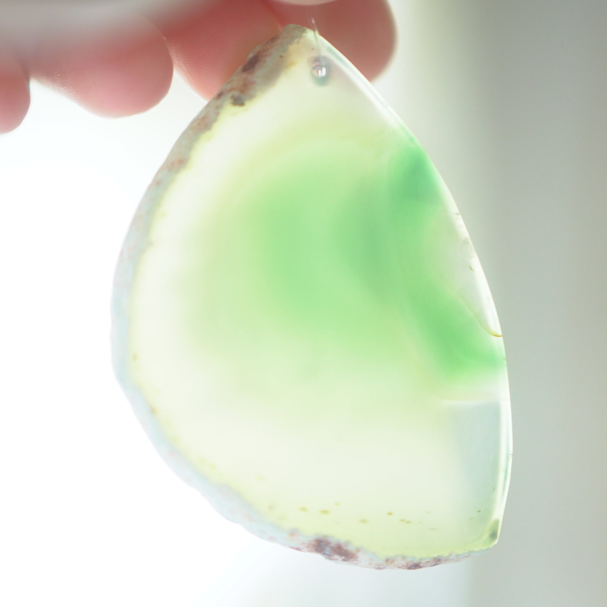 ✧✧✧染色の石なので耐光性(光による経年でのカラー変化の耐性)に優れているわけではなく一日の中で長時間強い日光に当たるような場所に飾られるのはおすすめしないのですが、陽光に透かした時にだけ真価を発揮する美しさがありますので、是非たまに翳したりして光と一緒にお楽しみいただけたらと思っております。特に濃い鮮やかな色など、気になられる場合は、日光のあまり当たらない場所に飾っていただけたらと思います✧✧✧