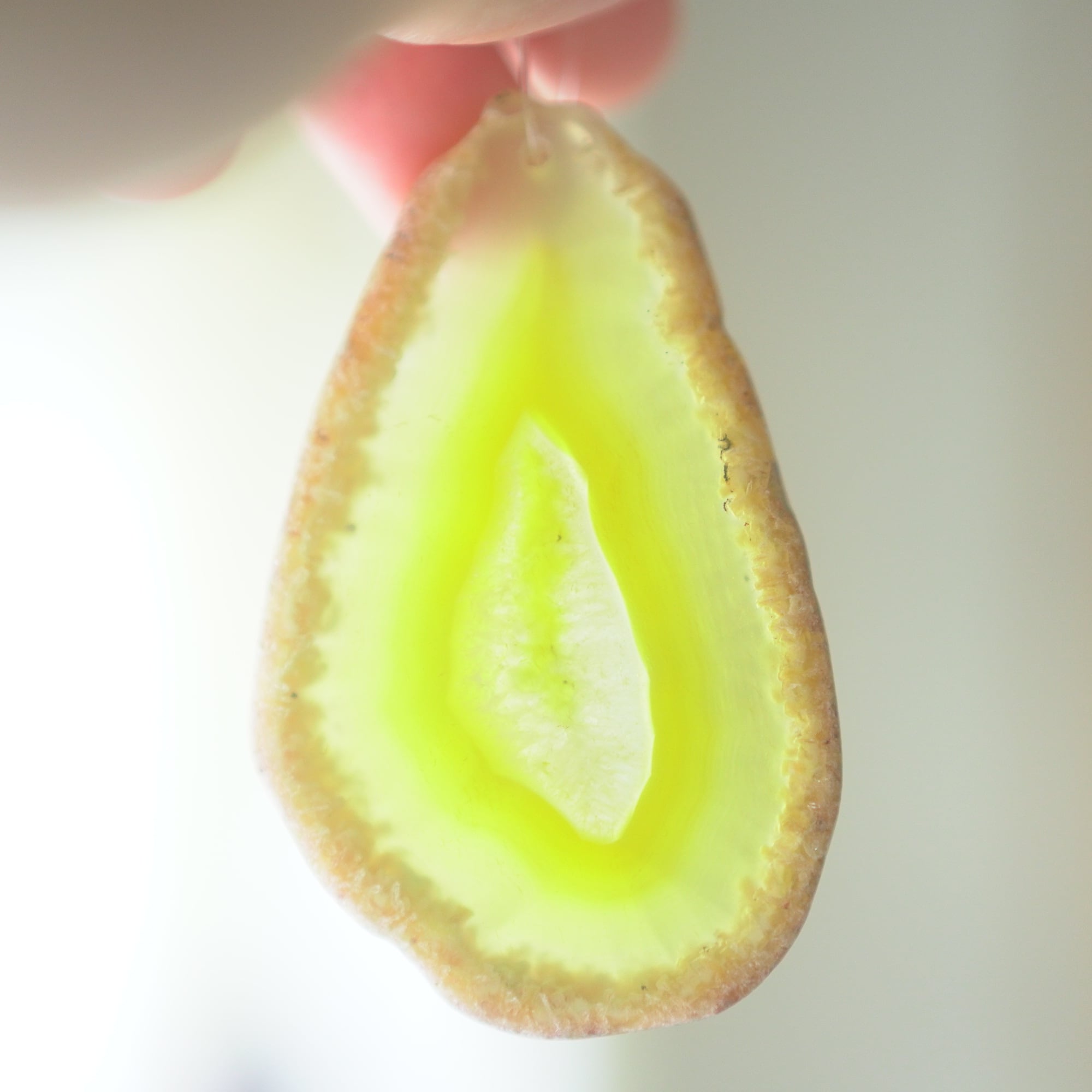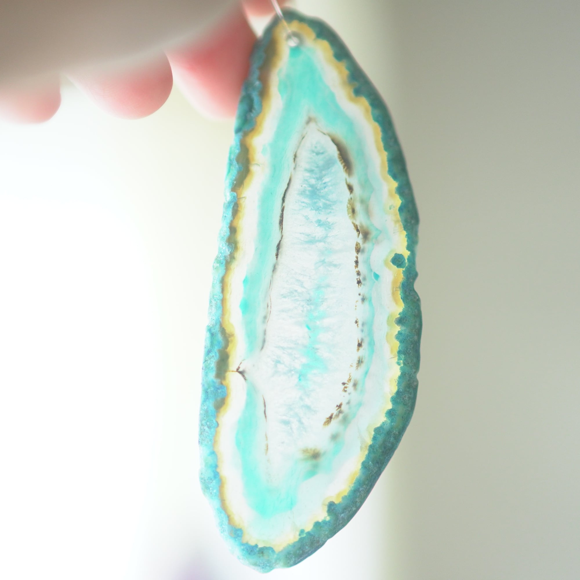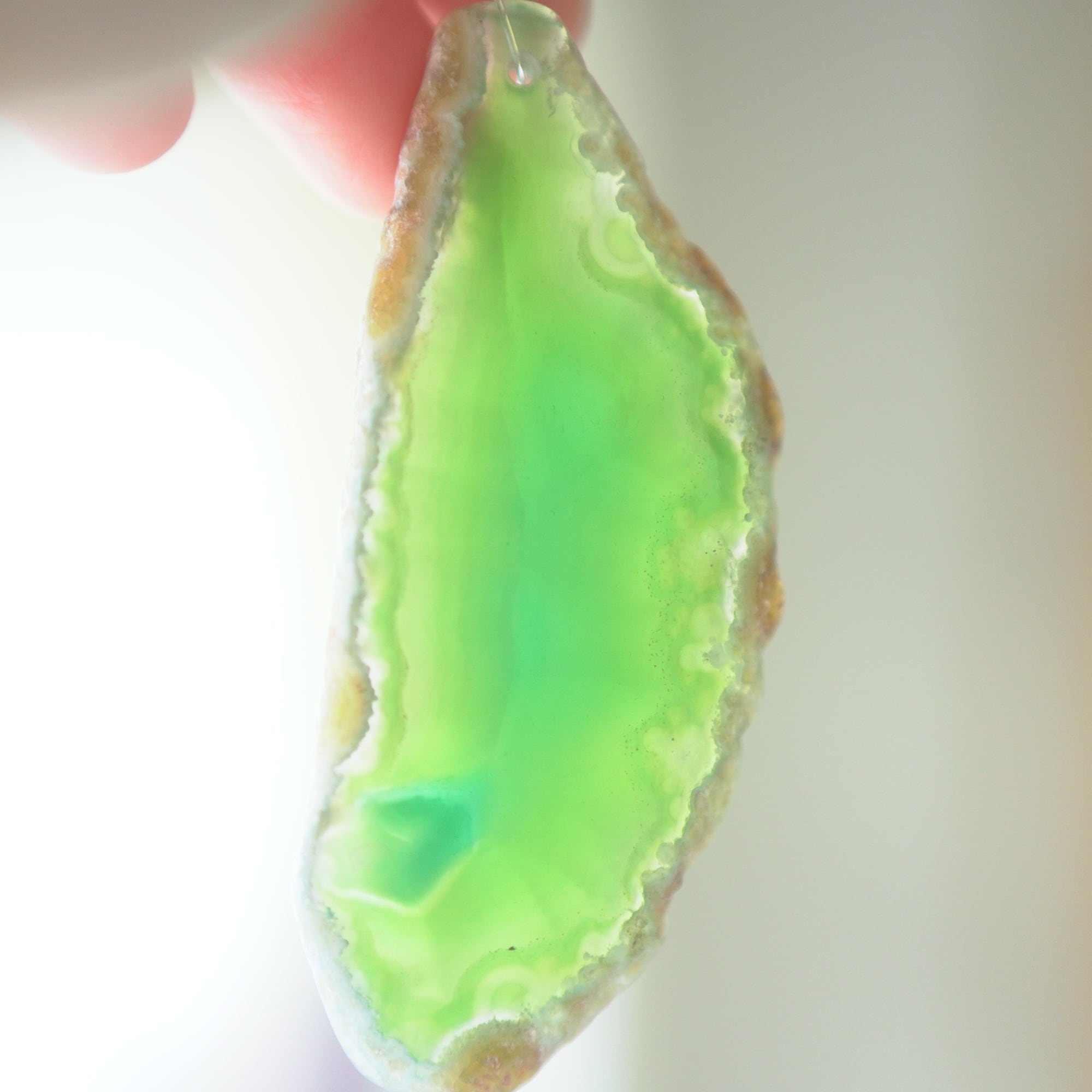 ✧✧✧染色の石なので耐光性(光による経年でのカラー変化の耐性)に優れているわけではなく一日の中で長時間強い日光に当たるような場所に飾られるのはおすすめしないのですが、陽光に透かした時にだけ真価を発揮する美しさがありますので、是非たまに翳したりして光と一緒にお楽しみいただけたらと思っております。特に濃い鮮やかな色など、気になられる場合は、日光のあまり当たらない場所に飾っていただけたらと思います✧✧✧