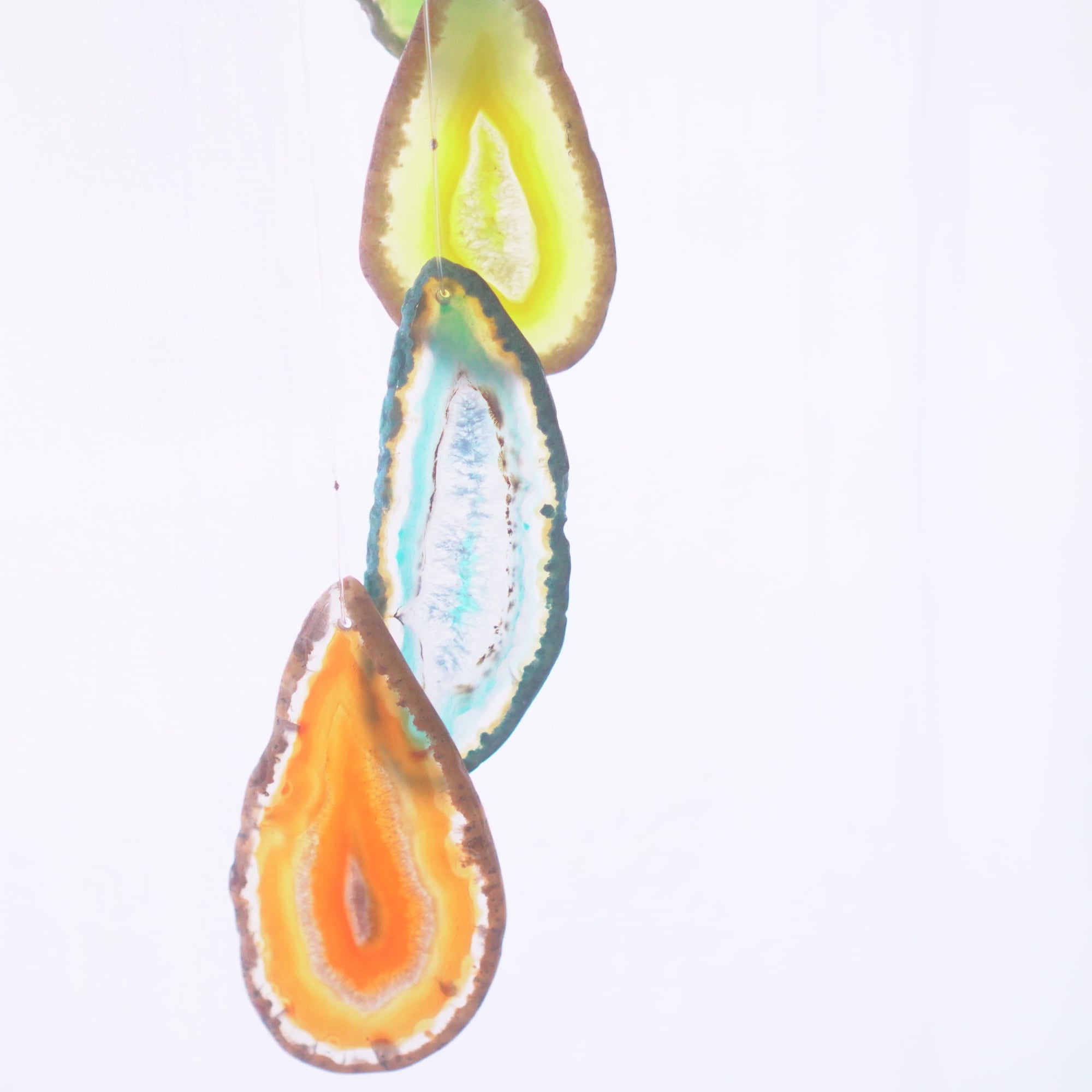 連なるアゲートが風を受けて揺れるとチリンチリン、美しい響きの音が鳴りとても癒されます。