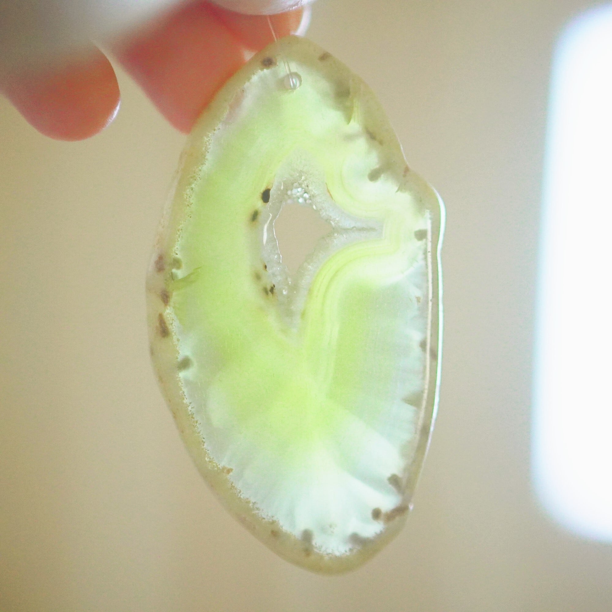 ✧✧✧染色の石なので耐光性(光による経年でのカラー変化の耐性)に優れているわけではなく一日の中で長時間強い日光に当たるような場所に飾られるのはおすすめしないのですが、陽光に透かした時にだけ真価を発揮する美しさがありますので、是非たまに翳したりして光と一緒にお楽しみいただけたらと思っております。特に濃い鮮やかな色など、気になられる場合は、日光のあまり当たらない場所に飾っていただけたらと思います✧✧✧