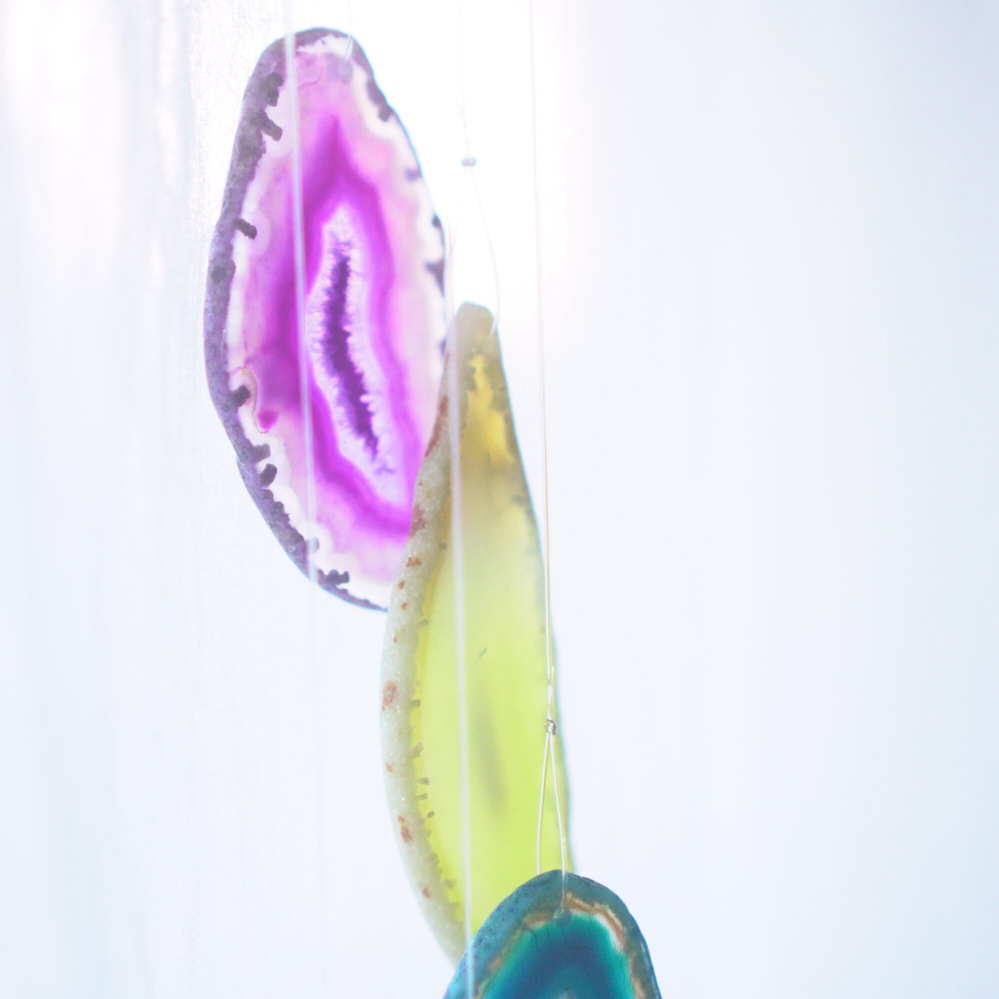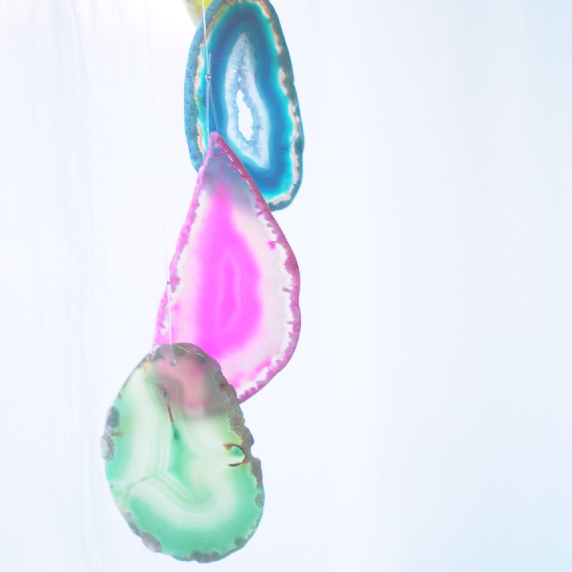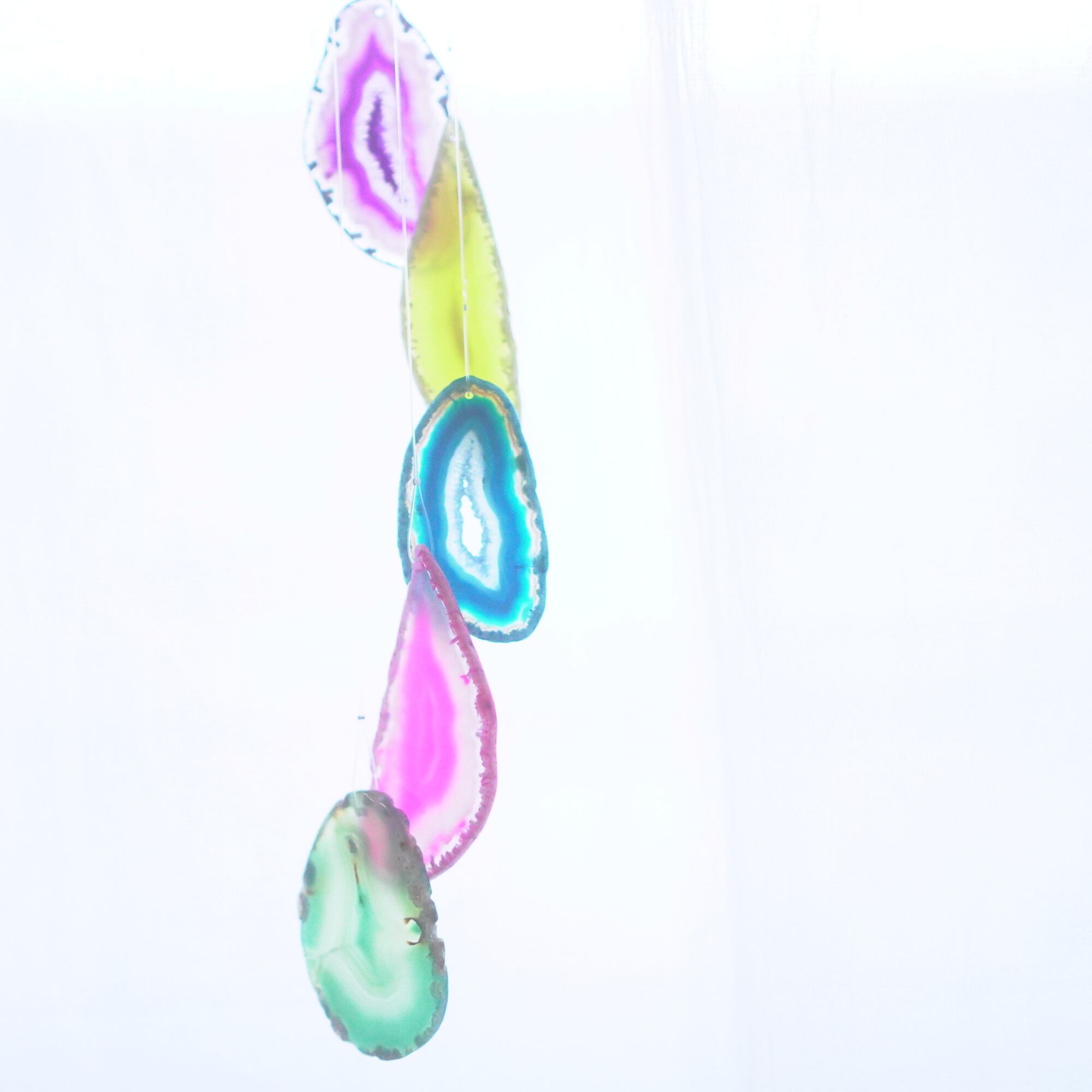 連なるアゲートが風を受けて揺れるとチリンチリン、美しい響きの音が鳴りとても癒されます。