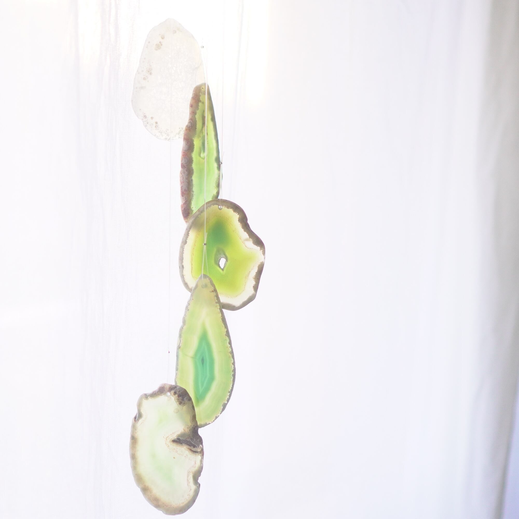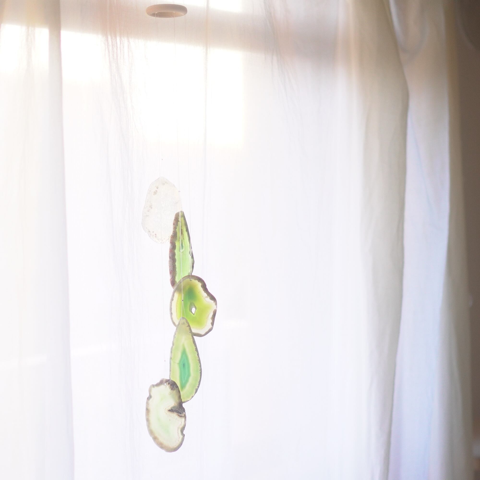 連なるアゲートが風を受けて揺れるとチリンチリン、美しい響きの音が鳴りとても癒されます。