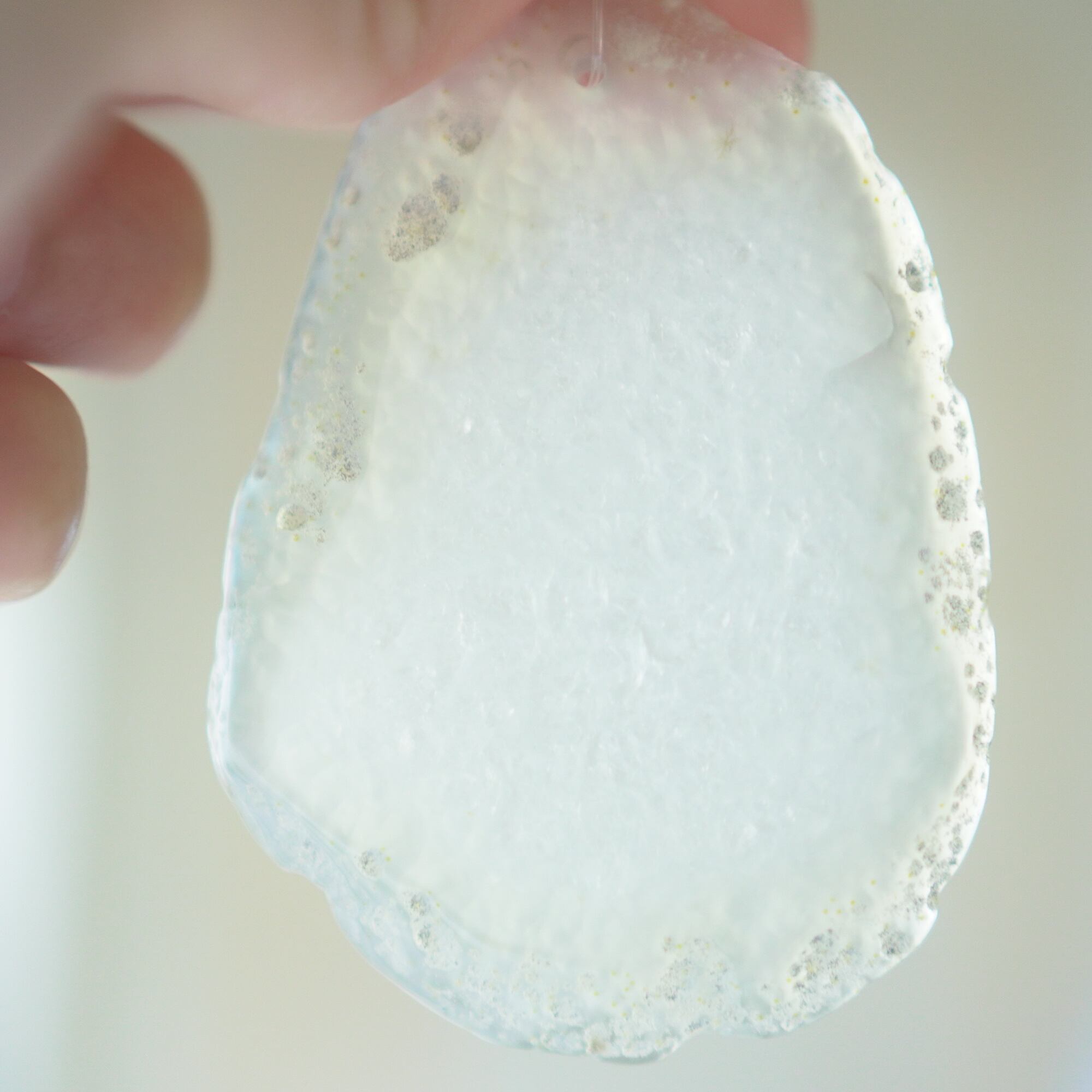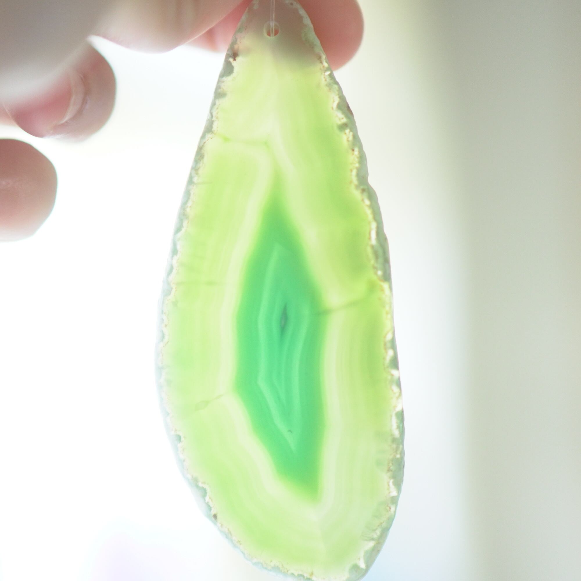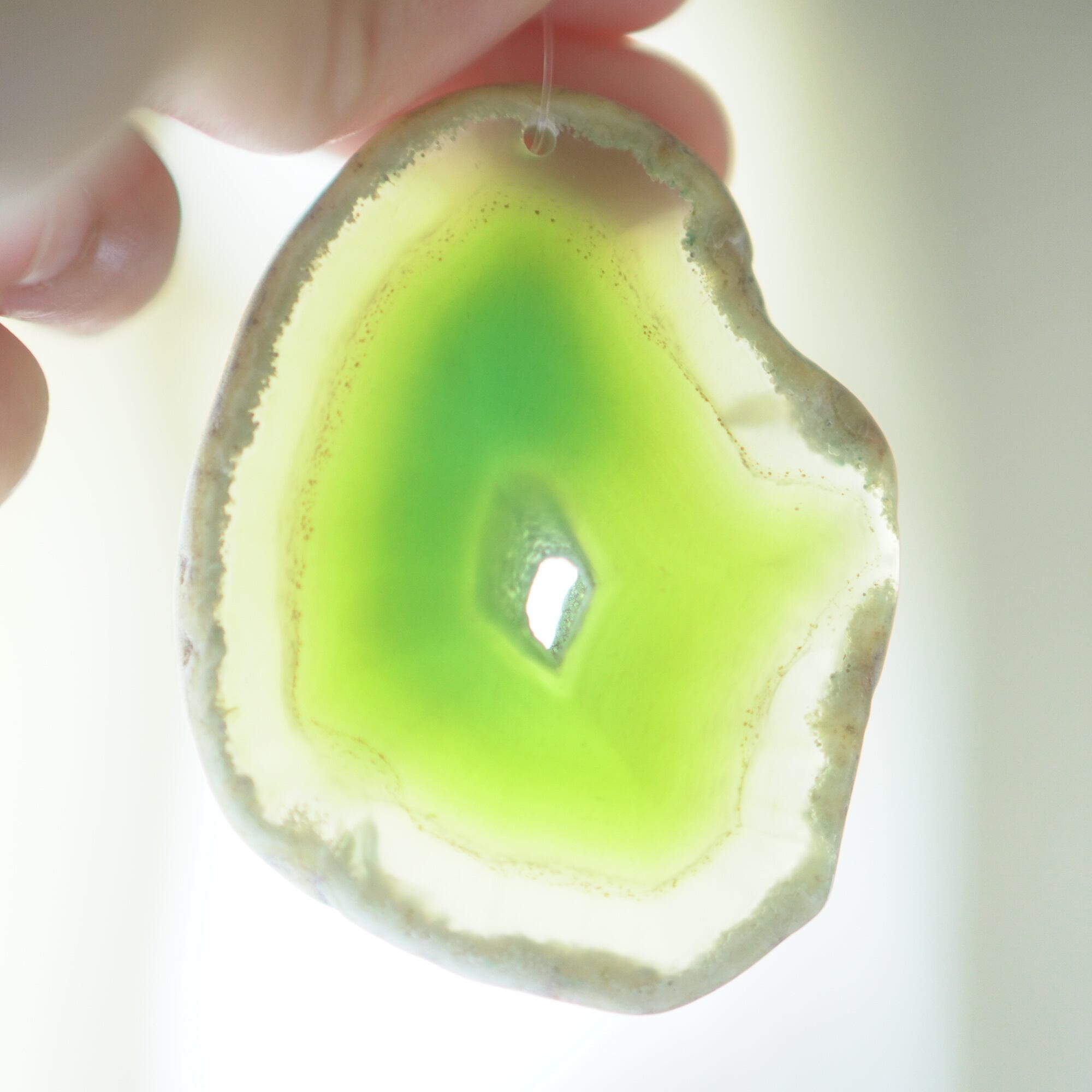 ✧染色の石なので耐光性(光による経年でのカラー変化の耐性)に優れているわけではなくベランダなど一日の中で長時間強い日光に当たるような場所に飾られるのはおすすめしないのですが、陽光に透かした時にだけ真価を発揮する美しさがありますので、是非、時折翳したりして光と一緒にお楽しみいただけたらと思います。特に濃い鮮やかな色など、色変化が気になられる場合は、日光のあまり当たらない場所に飾ってくださいね✧