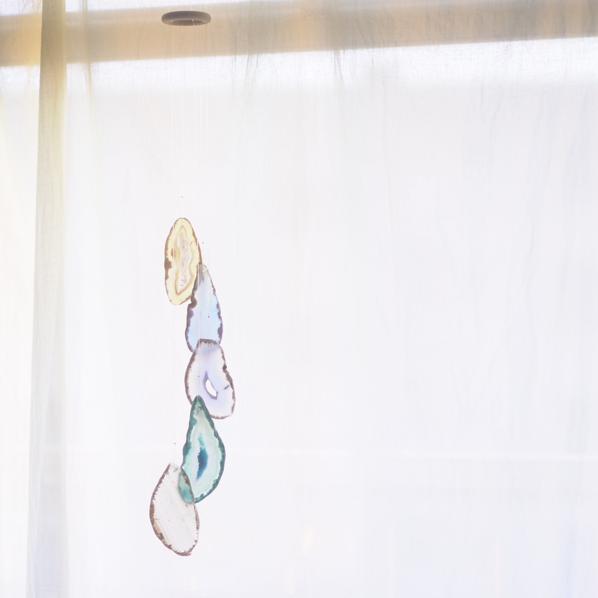 連なるアゲートが風を受けて揺れるとチリンチリン、美しい響きの音が鳴りとても癒されます。