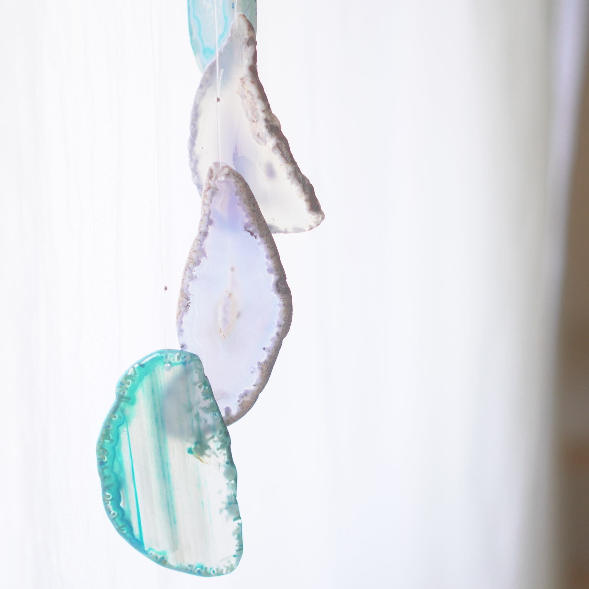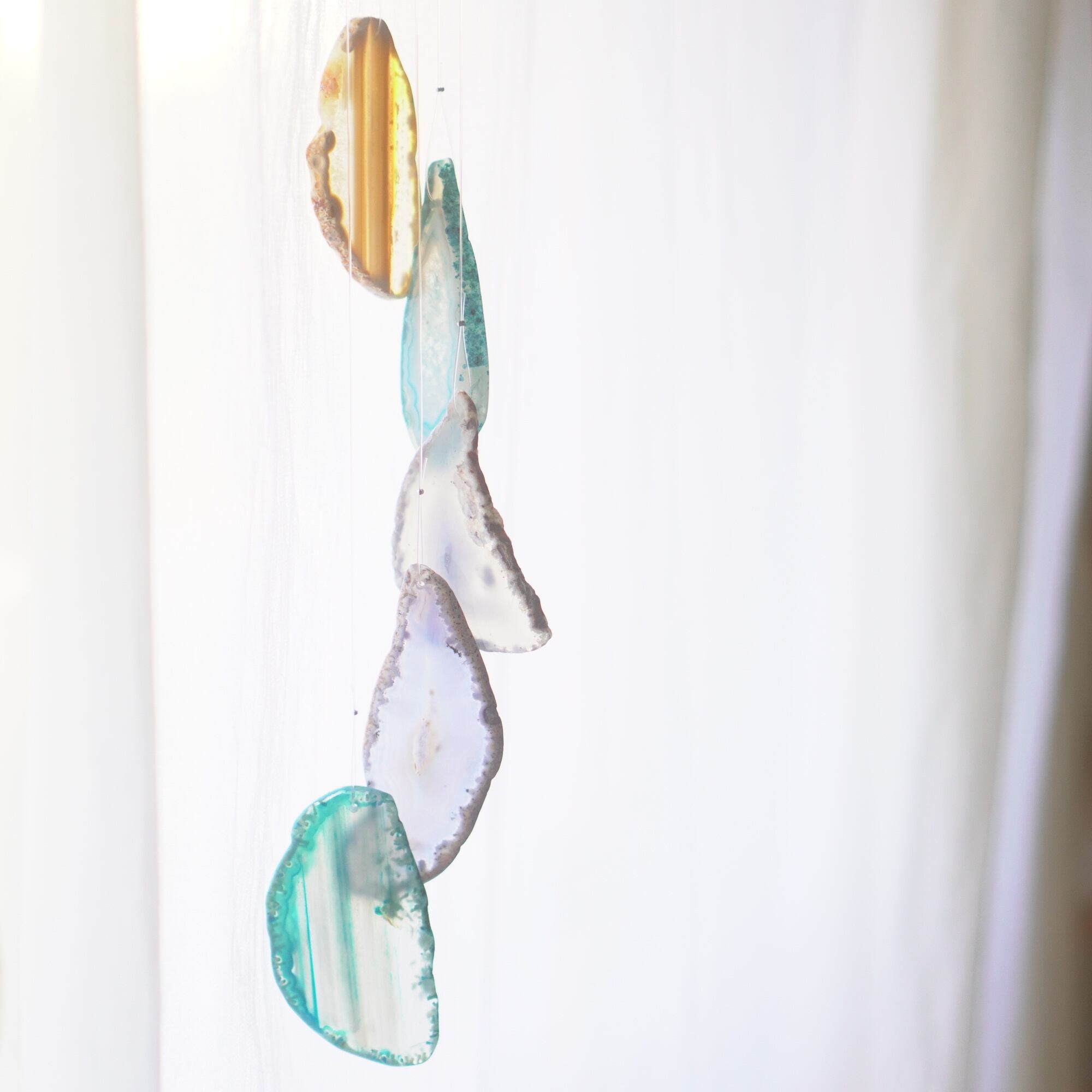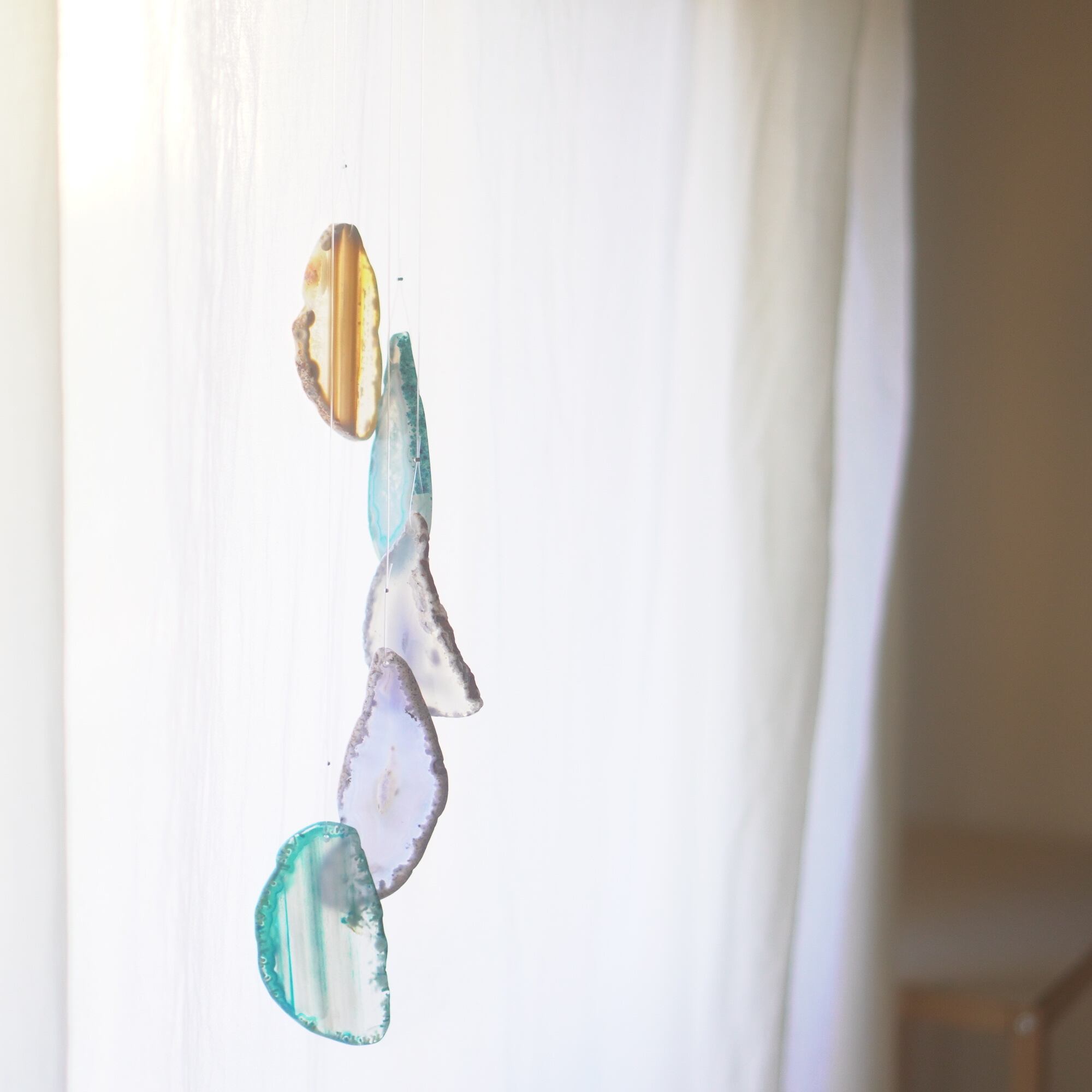 連なるアゲートが風を受けて揺れるとチリンチリン、美しい響きの音が鳴りとても癒されます。