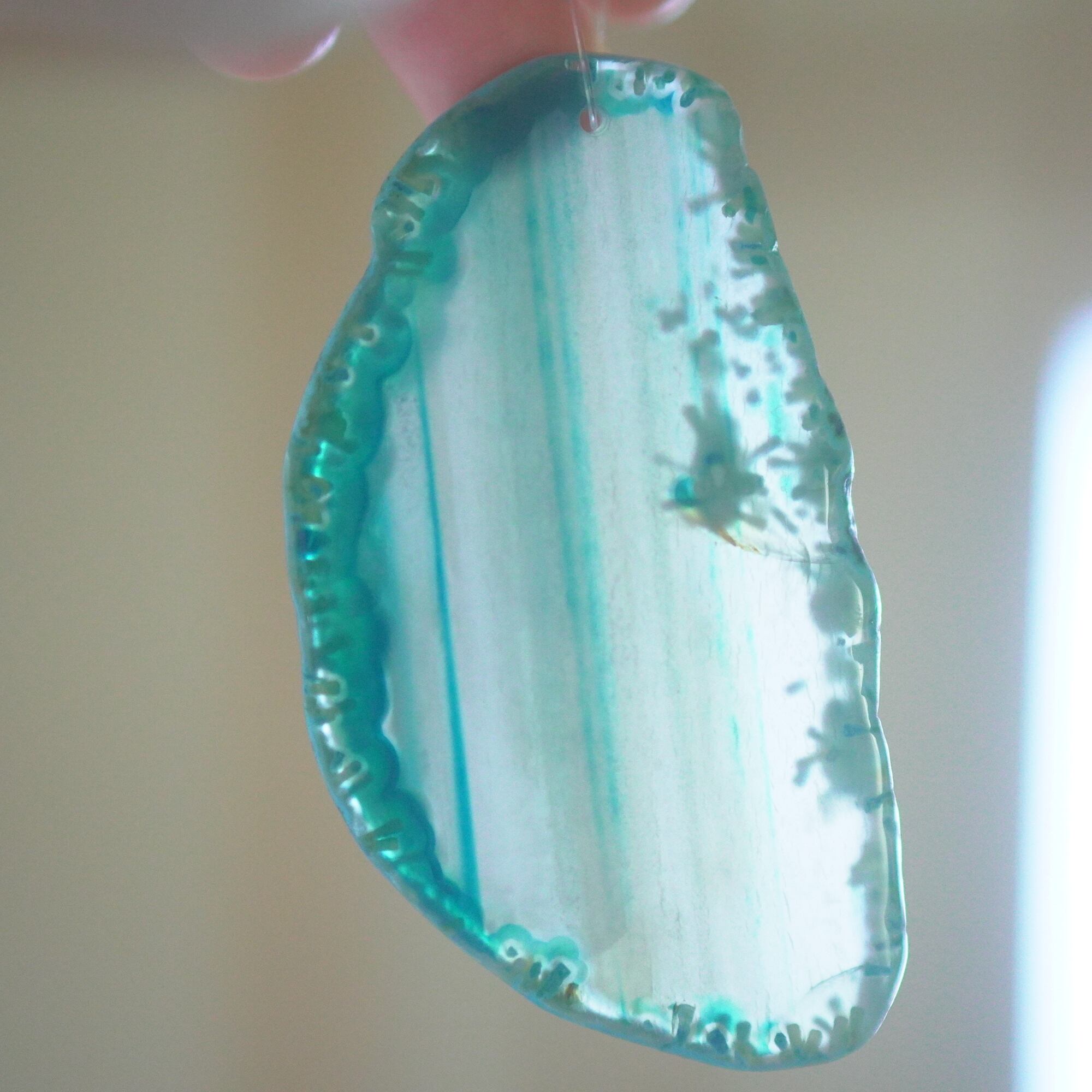 ✧✧✧染色の石なので耐光性(光による経年でのカラー変化の耐性)に優れているわけではなく一日の中で長時間強い日光に当たるような場所に飾られるのはおすすめしないのですが、陽光に透かした時にだけ真価を発揮する美しさがありますので、是非たまに翳したりして光と一緒にお楽しみいただけたらと思っております。特に濃い鮮やかな色など、気になられる場合は、日光のあまり当たらない場所に飾っていただけたらと思います✧✧✧
