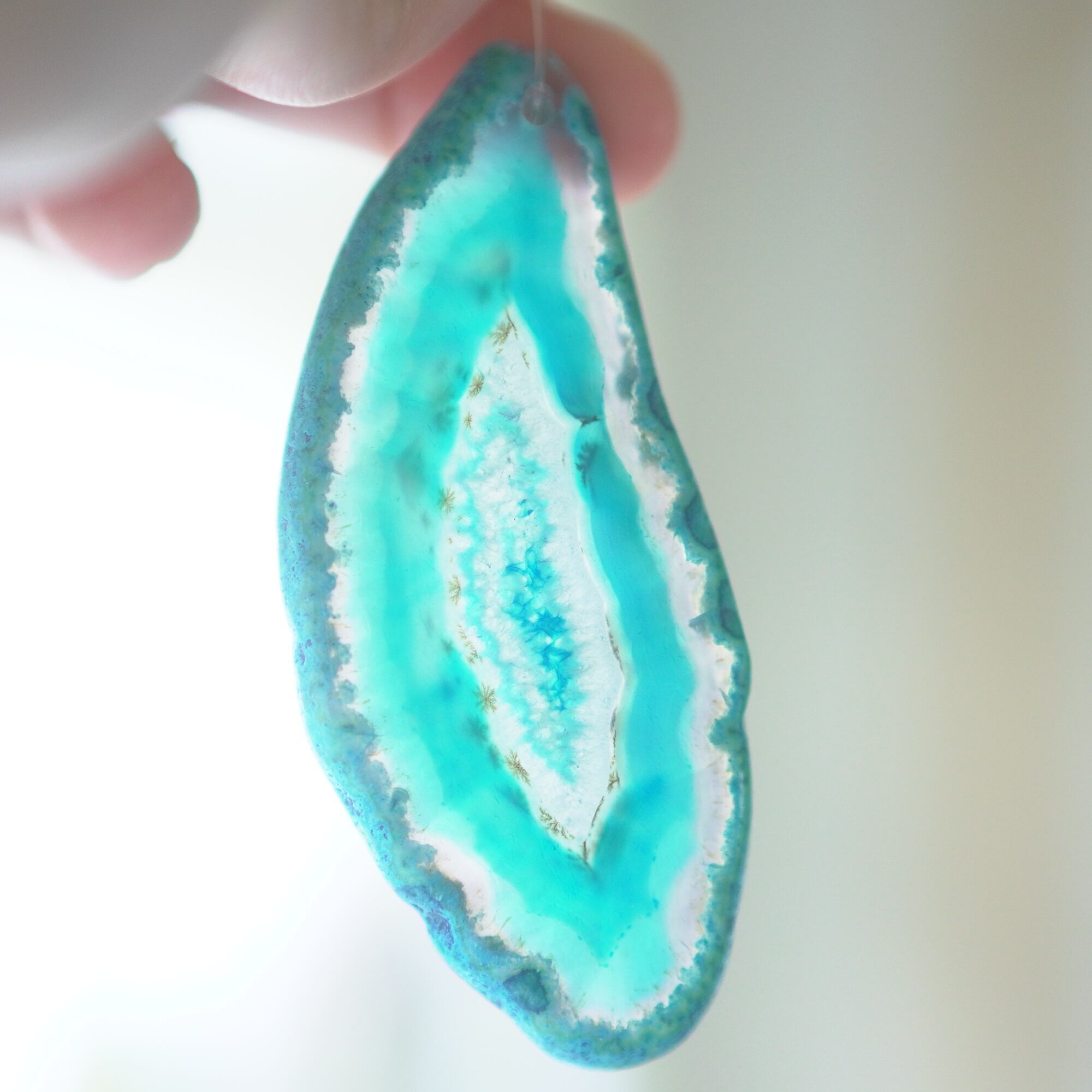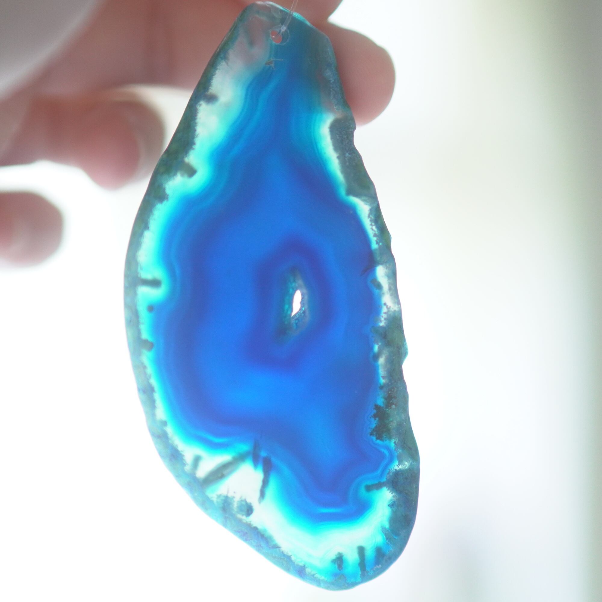 ✧✧✧染色の石なので耐光性(光による経年でのカラー変化の耐性)に優れているわけではなく一日の中で長時間強い日光に当たるような場所に飾られるのはおすすめしないのですが、陽光に透かした時にだけ真価を発揮する美しさがありますので、是非たまに翳したりして光と一緒にお楽しみいただけたらと思っております。特に濃い鮮やかな色など、気になられる場合は、日光のあまり当たらない場所に飾っていただけたらと思います✧✧✧
