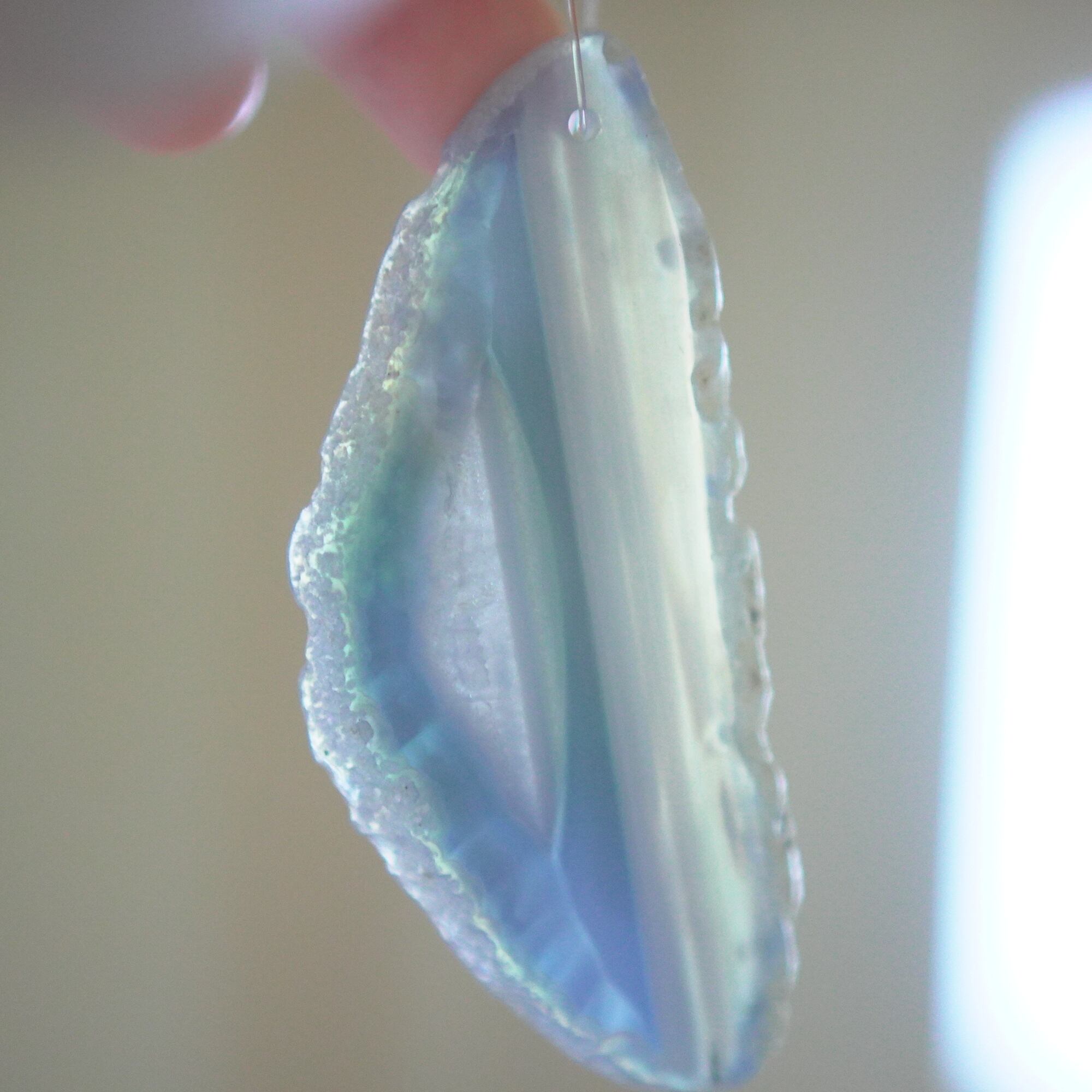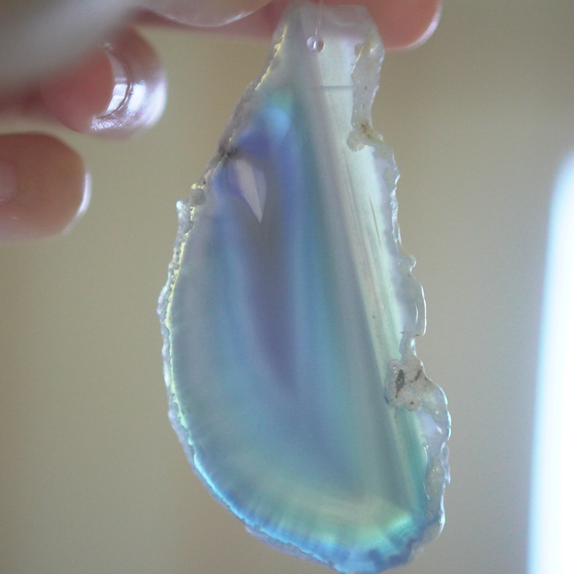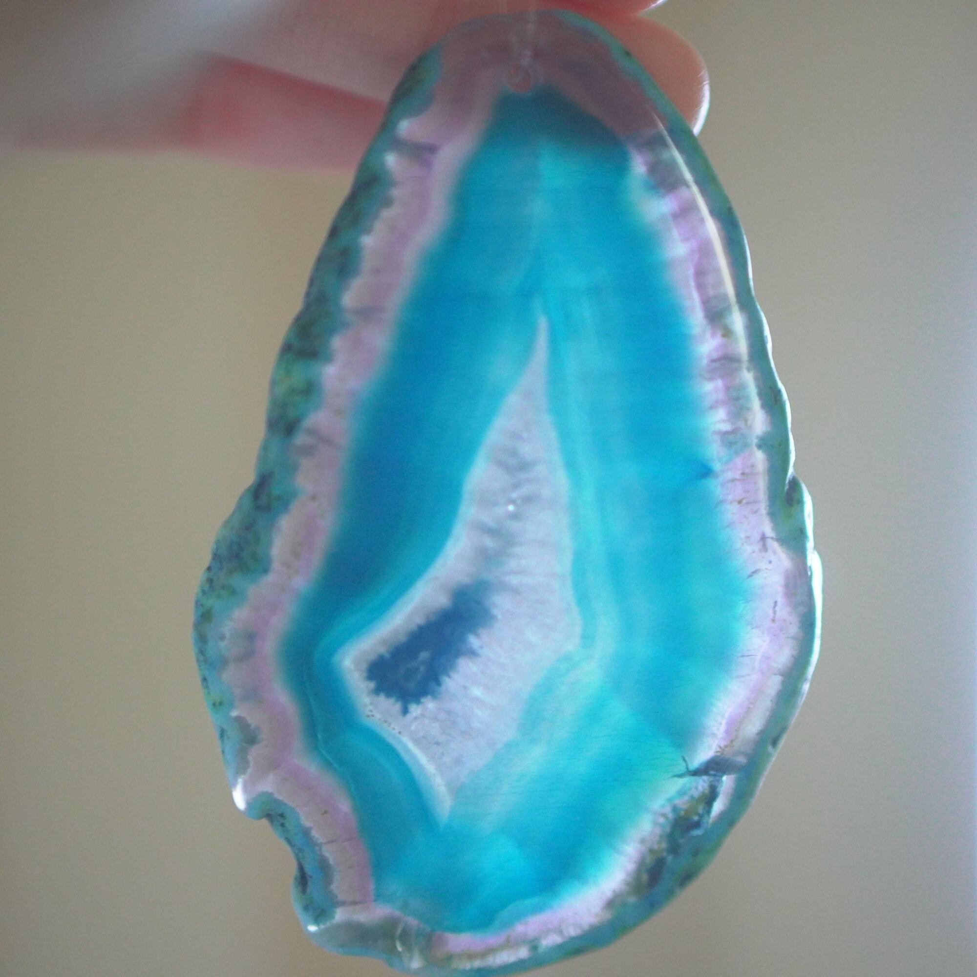 ✧✧✧染色の石なので耐光性(光による経年でのカラー変化の耐性)に優れているわけではなく一日の中で長時間強い日光に当たるような場所に飾られるのはおすすめしないのですが、陽光に透かした時にだけ真価を発揮する美しさがありますので、是非たまに翳したりして光と一緒にお楽しみいただけたらと思っております。特に濃い鮮やかな色など、気になられる場合は、日光のあまり当たらない場所に飾っていただけたらと思います✧✧✧