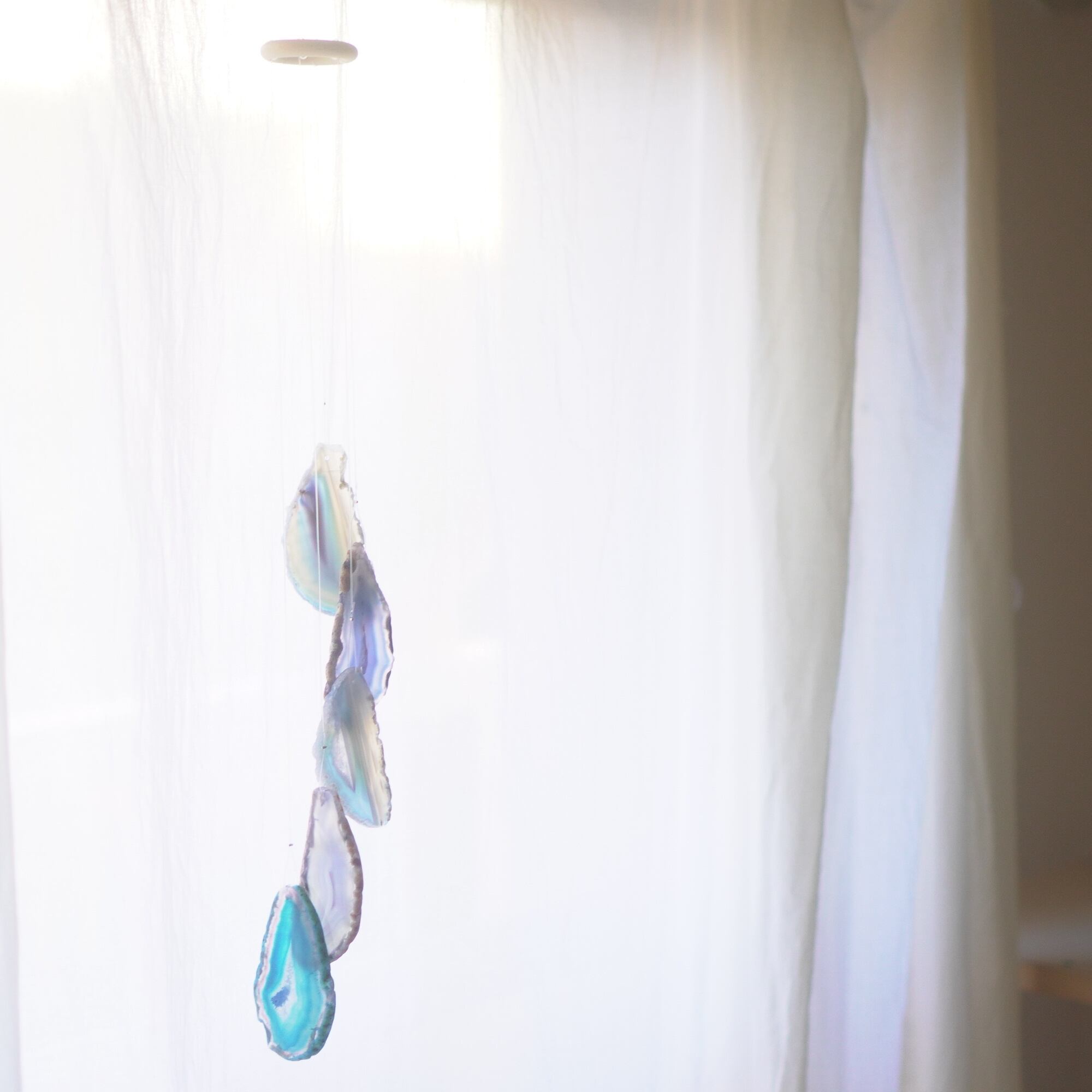 連なるアゲートが風を受けて揺れるとチリンチリン、美しい響きの音が鳴りとても癒されます。