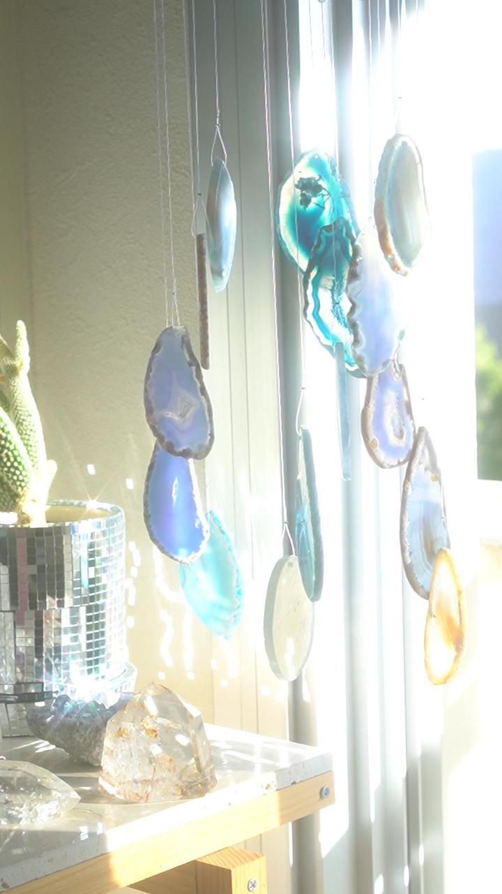 連なるアゲートが風を受けて揺れるとチリンチリン、美しい響きの音が鳴りとても癒されます。