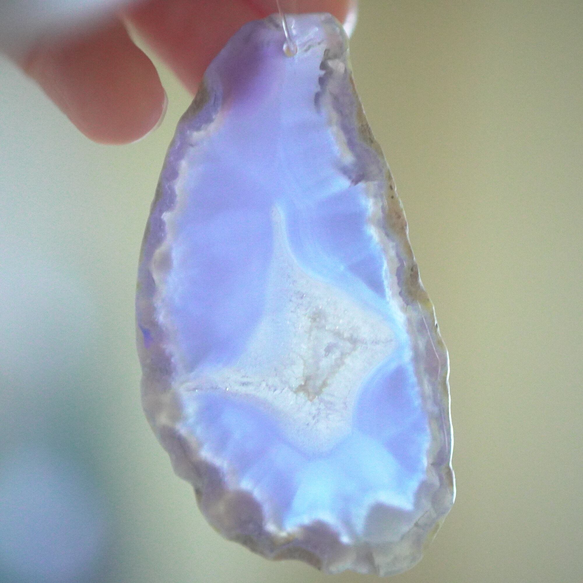 Agate Slice , Natural Wood , Nylon Cord , Metal